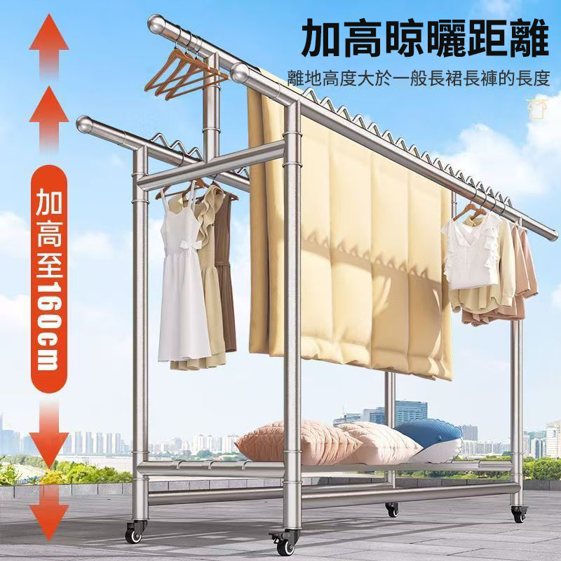 【清倉特惠】華昌不鏽鋼有限公司清倉200組「可伸縮折疊防風晾衣架」 兩桿/三桿任你選,打開即用 加厚不鏽鋼 高承重不變形