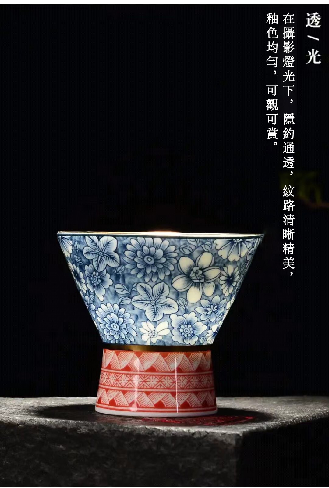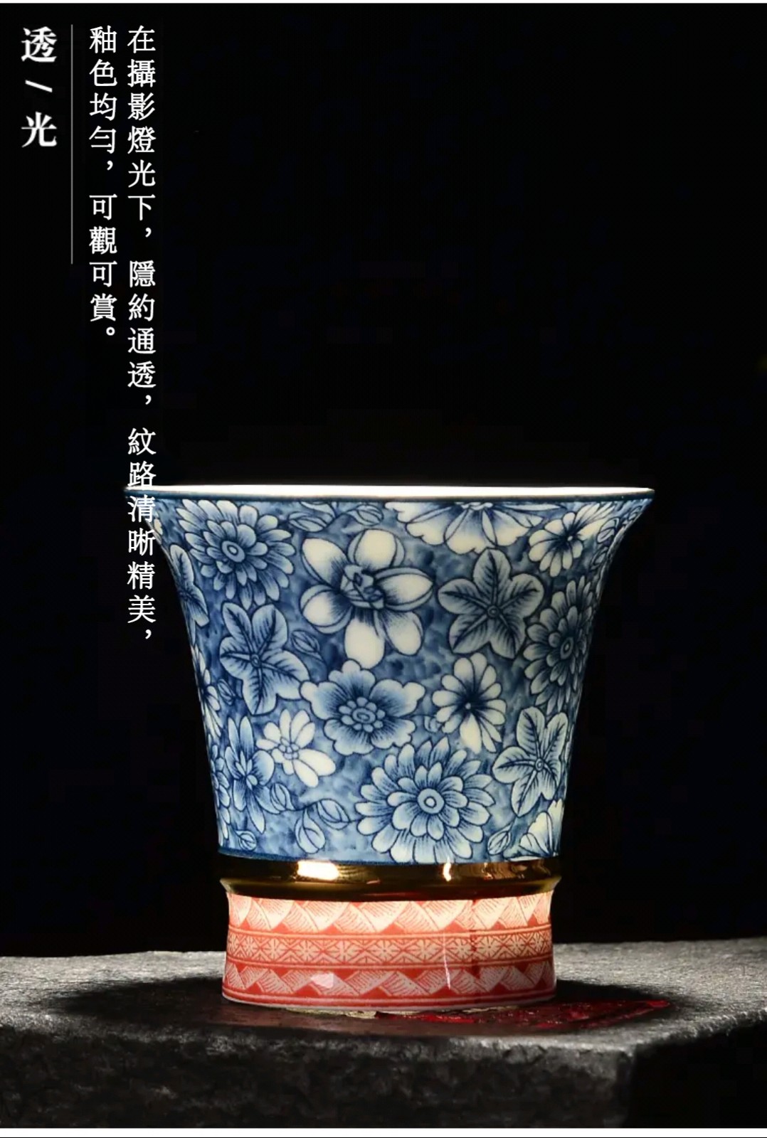 4分鐘前【汀和大福】高白薄胎青花瓷斗笠杯 - 高腰青花芙蓉
