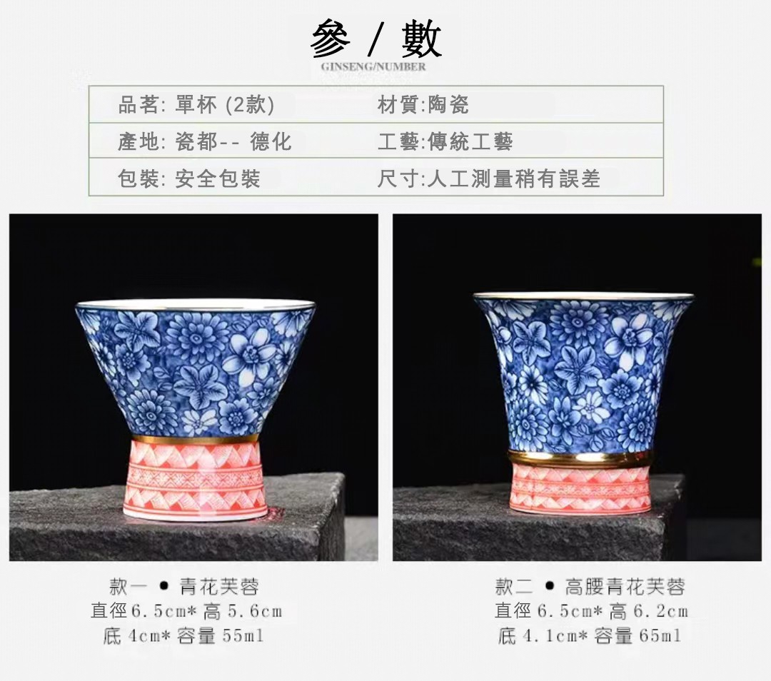 20分鐘前【汀和大福】高白薄胎青花瓷斗笠杯 - 高腰青花芙蓉