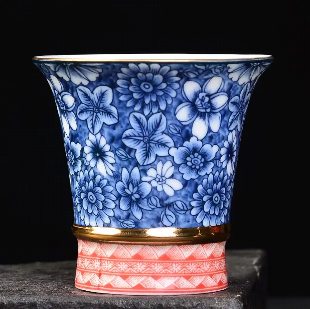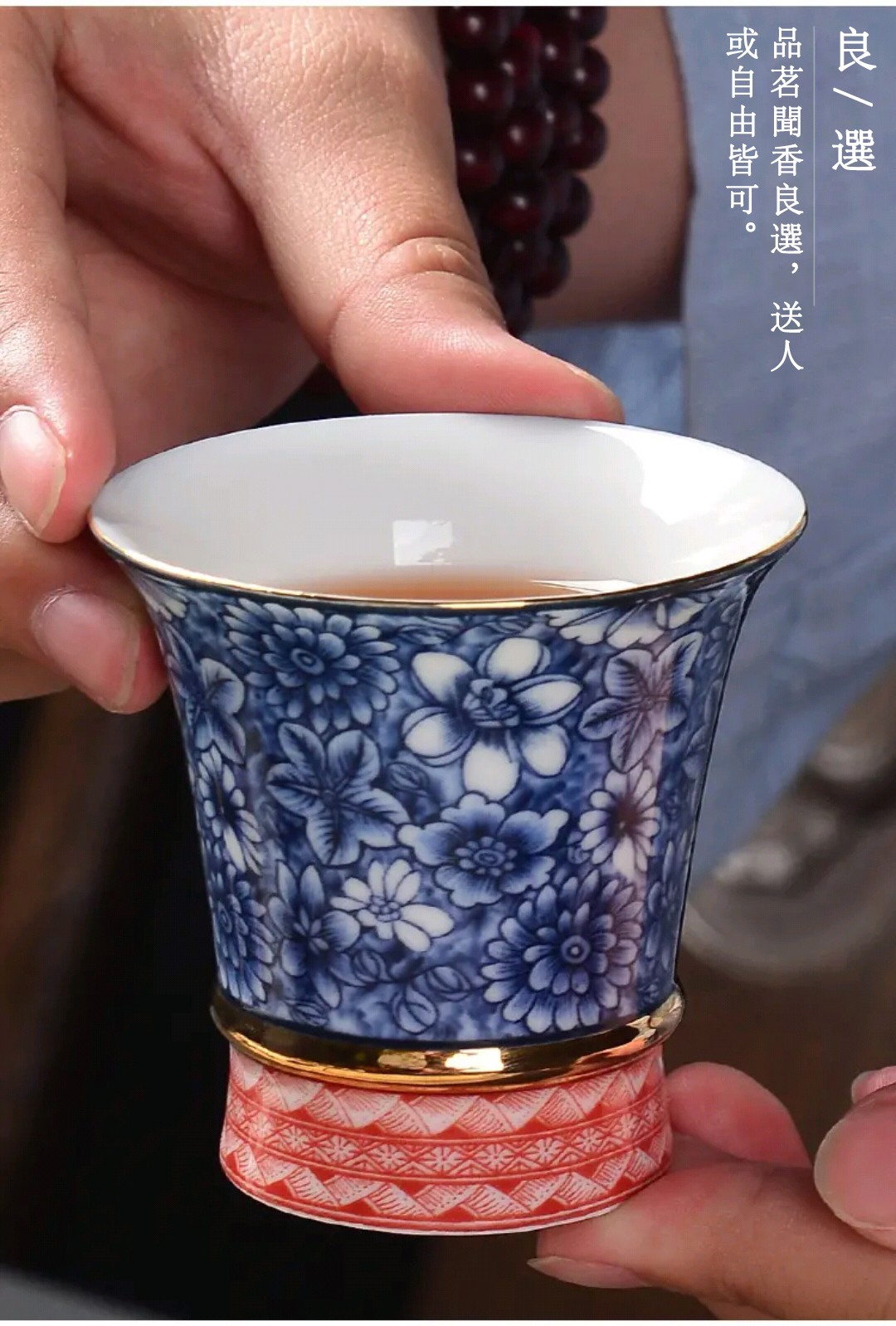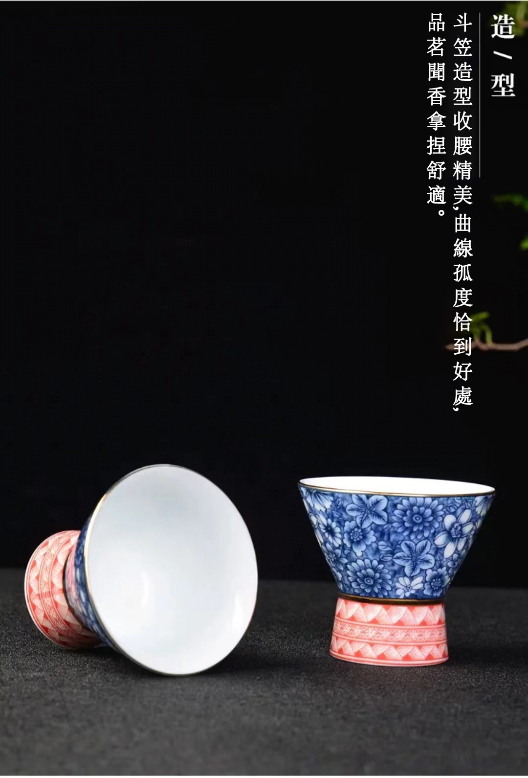 12分鐘前【汀和大福】高白薄胎青花瓷斗笠杯 - 高腰青花芙蓉