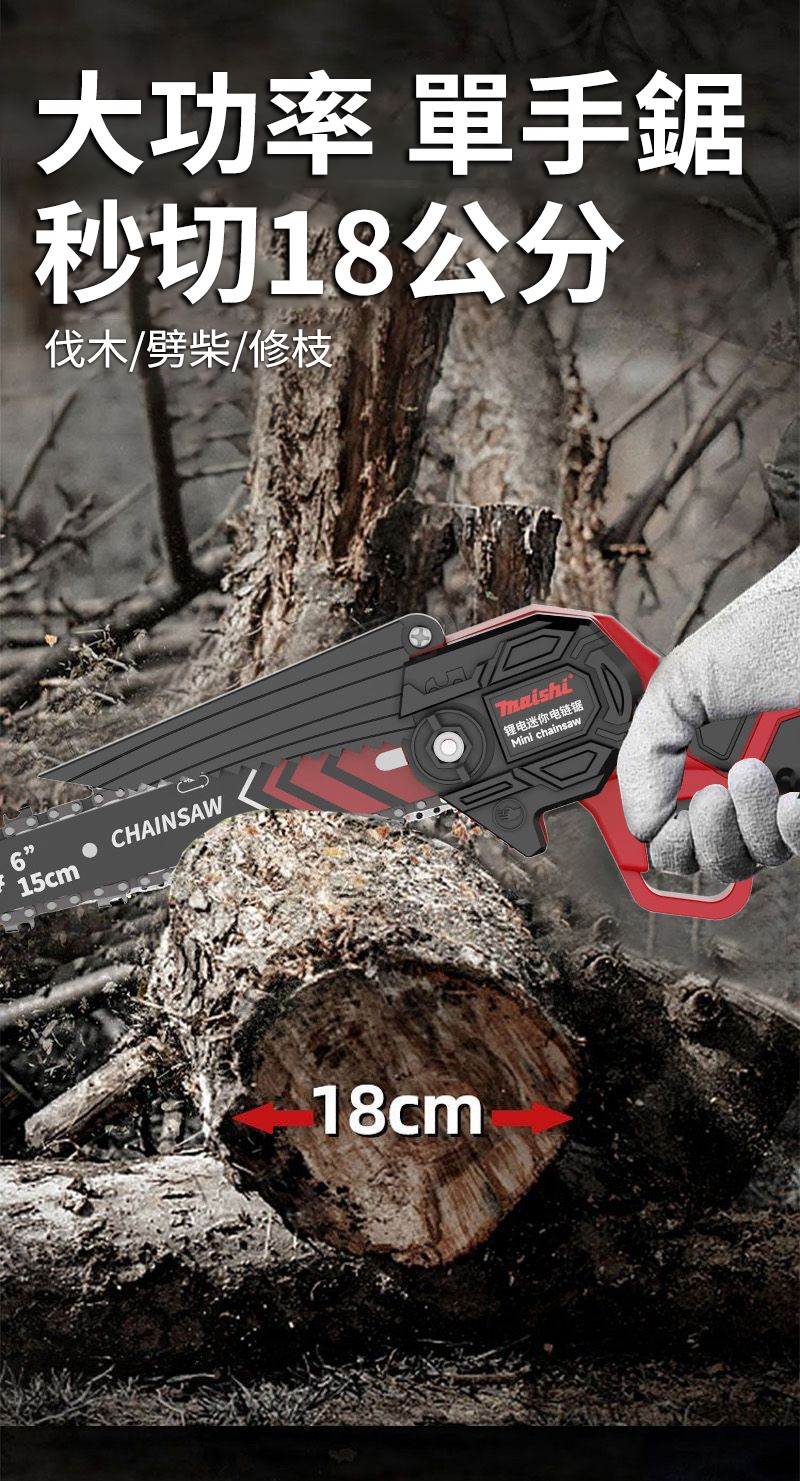 5分鐘前伐木神器登場【整機全新升級】德國MAISHI鋰電鏈鋸 單手操作 輕巧暴力 新品下殺僅NT$1380 - 【旗艦款】6寸電鏈鋸【9900Vf 二電一充】+鏈條*2
