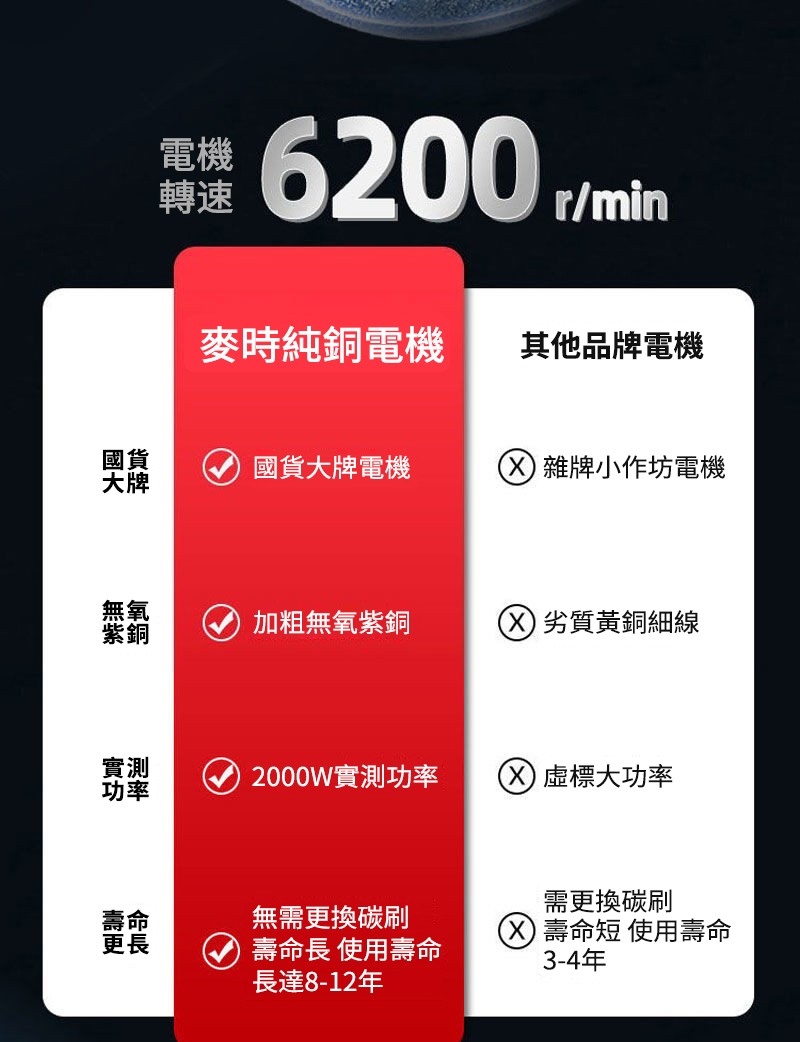 最大功率可達2000W,快速鋸木不費力