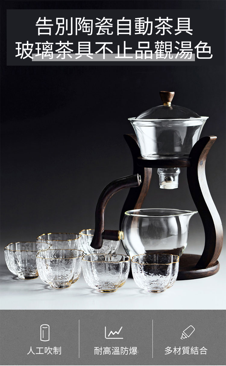 4分鐘前【汀和大福】全自動玻璃功夫茶具套裝【登高望月/楠竹茶架/海洋之心茶架可選】 - 登高望月+6把杯