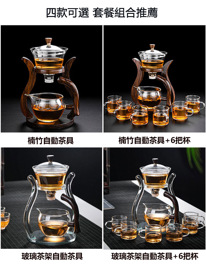 4分鐘前【汀和大福】全自動玻璃功夫茶具套裝【登高望月/楠竹茶架/海洋之心茶架可選】 - 楠竹+6把杯