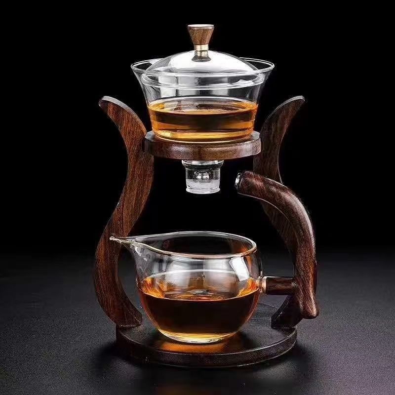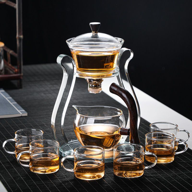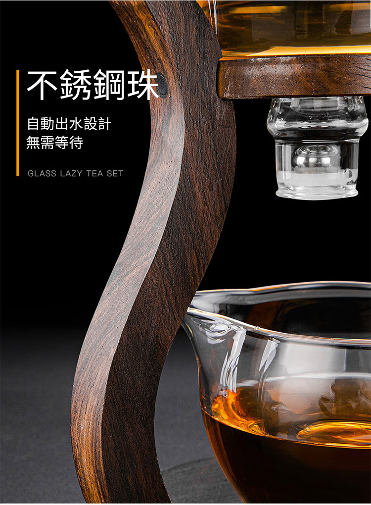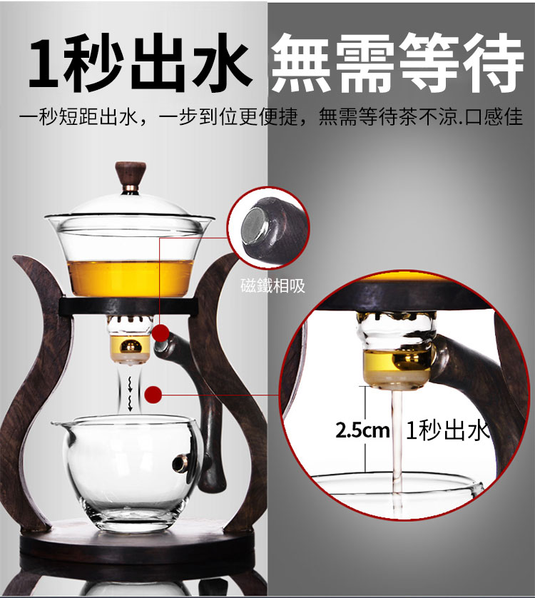 7分鐘前【汀和大福】全自動玻璃功夫茶具套裝【登高望月/楠竹茶架/海洋之心茶架可選】 - 楠竹+6把杯