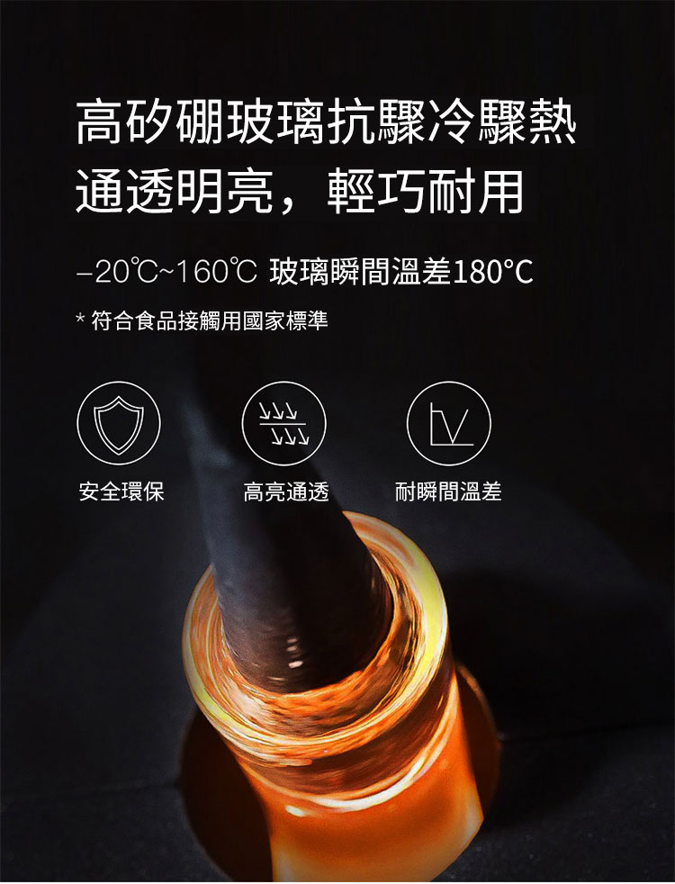 使用高硼矽玻璃材質,不含鉛汞等有害物質,可以放心接觸食