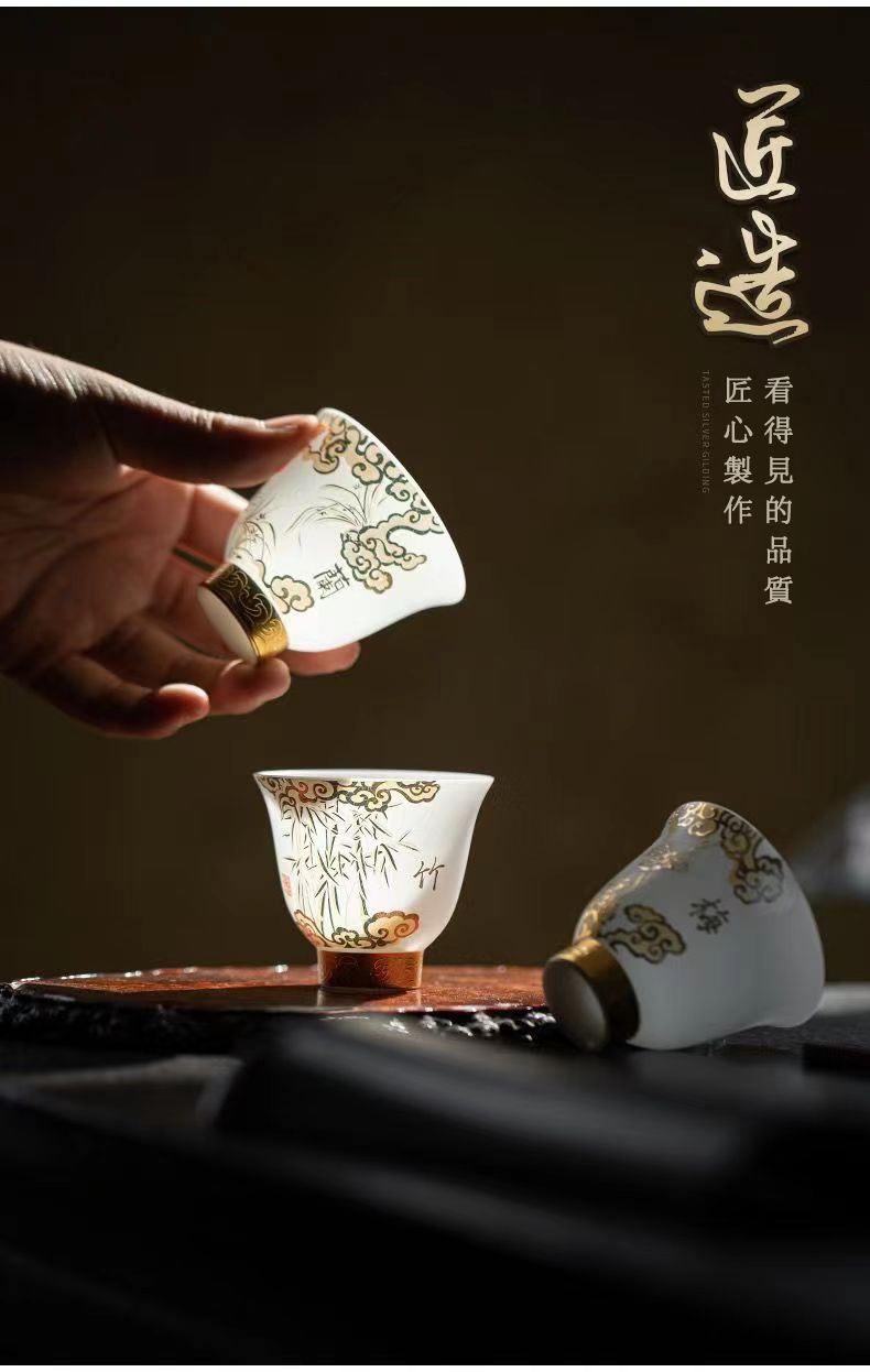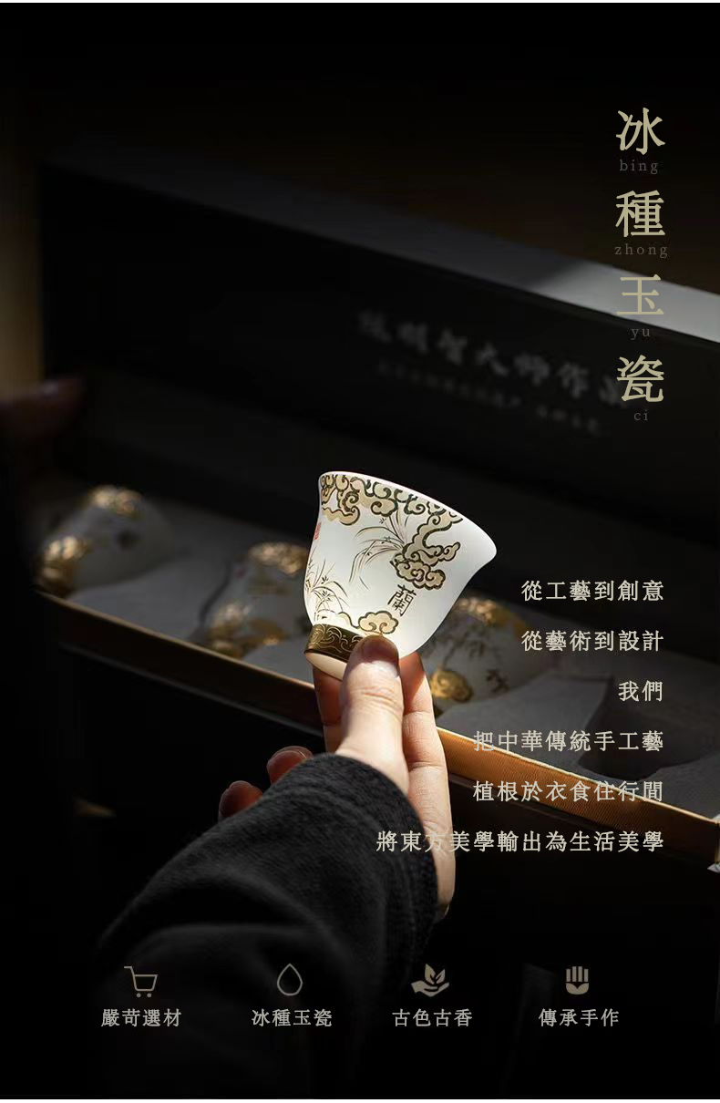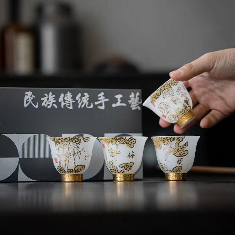 15分鐘前【汀和大福】陳明智老師手工素燒梅蘭竹菊羊脂玉瓷鈴鐺杯 禮盒裝 - 大師作禮盒裝(4杯)