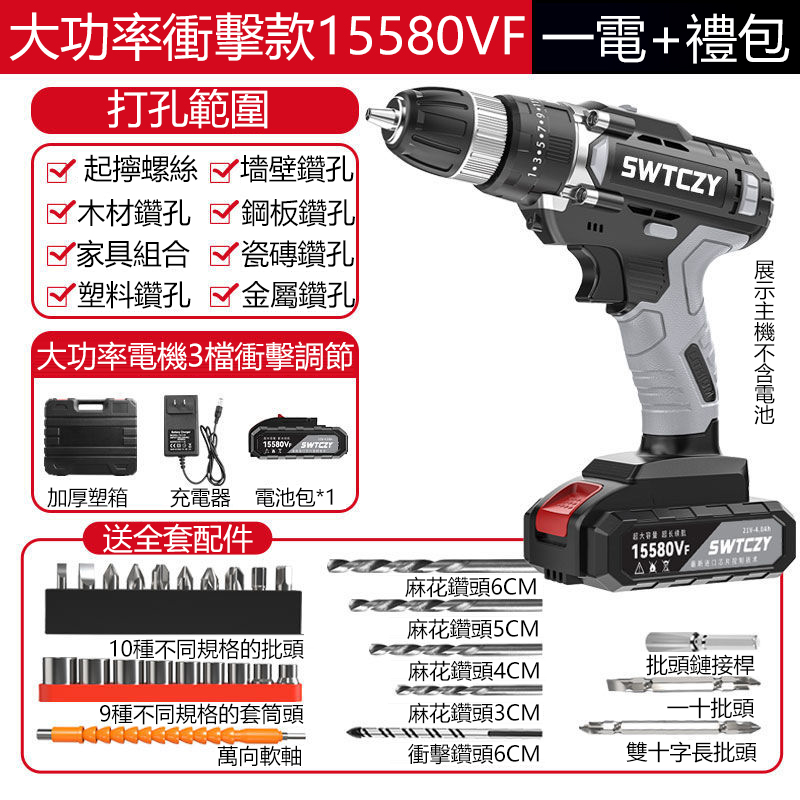 半小時前德國大功率 雙速衝擊鋰電鑽 純銅電機 無極變速 雙軸承設計 十年換新 - 進口衝擊15580VF塑箱1電+豪禮 NT$1680