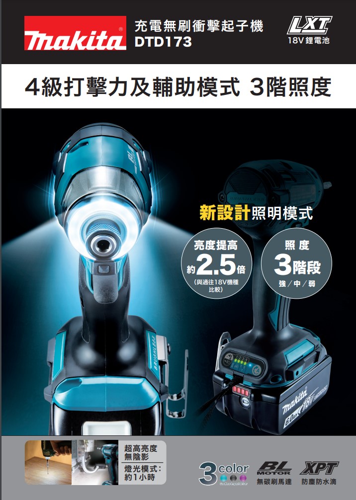 12分鐘前台灣現貨【MAKITA 牧田】 18V鋰電無刷衝擊起子機(DTD173) 日本製 強勁動力 - DTD173【2電1充+塑箱+鑽頭配備】