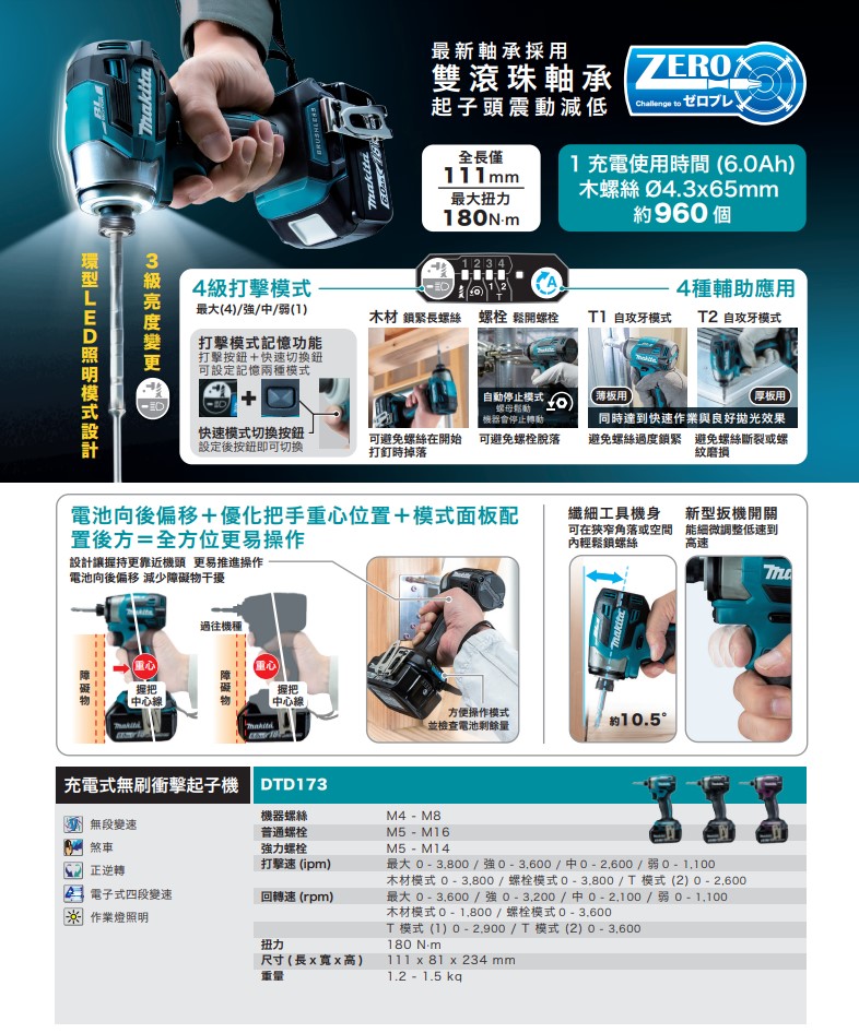 5分鐘前台灣現貨【MAKITA 牧田】 18V鋰電無刷衝擊起子機(DTD173) 日本製 強勁動力 - DTD173【1電1充+塑箱+鑽頭配備】