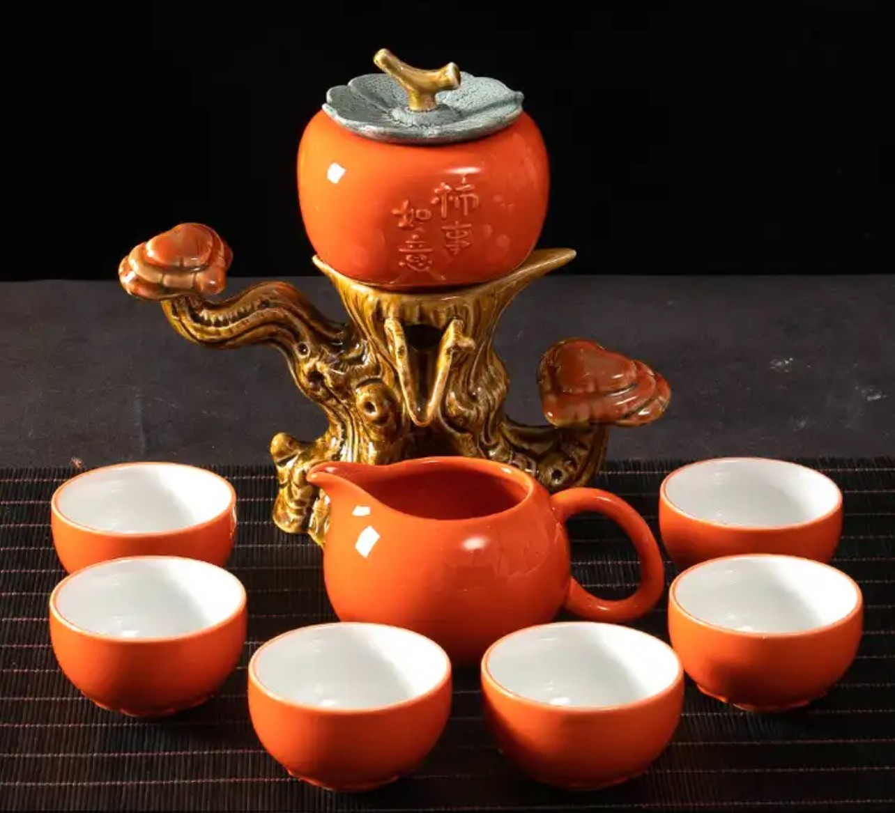 7分鐘前【汀和大福】時來運轉/柿事如意靈芝自動茶具 - 禮盒裝(附6杯)