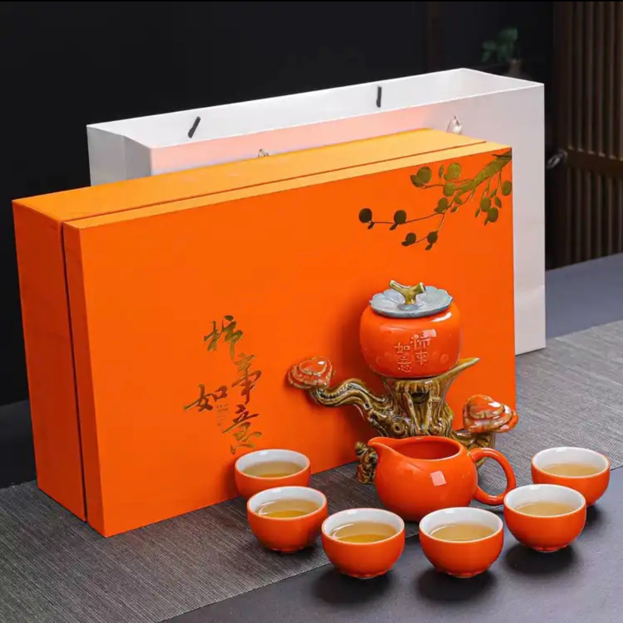 25分鐘前【汀和大福】時來運轉/柿事如意靈芝自動茶具 - 禮盒裝(附6杯)
