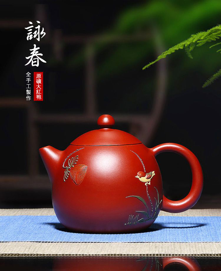 11分鐘前【經典器型 • 別出心裁】正宗宜興原礦大紅袍紫砂壺☞吳敏純手工匠心製作詠春龍蛋一壺四杯 - 大紅袍花香龍單壺200cc