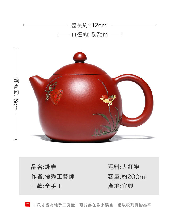 2分鐘前【經典器型 • 別出心裁】正宗宜興原礦大紅袍紫砂壺☞吳敏純手工匠心製作詠春龍蛋一壺四杯 - 大紅袍詠春蛋200cc(一壺兩杯)