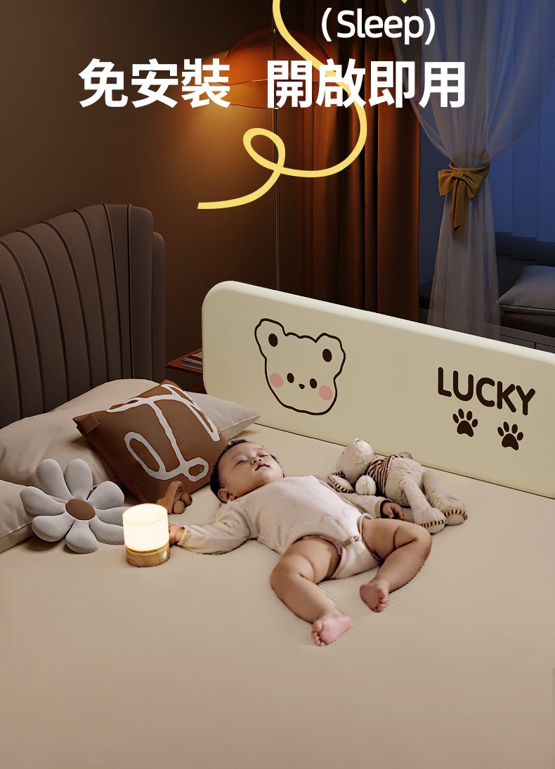 4分鐘前隨時隨地守護寶寶睡眠安全!【多貝嬰】可折疊防摔防護欄,免安裝,打開即用,旅行出遊方便攜帶 - 1.5米-免安裝折疊款