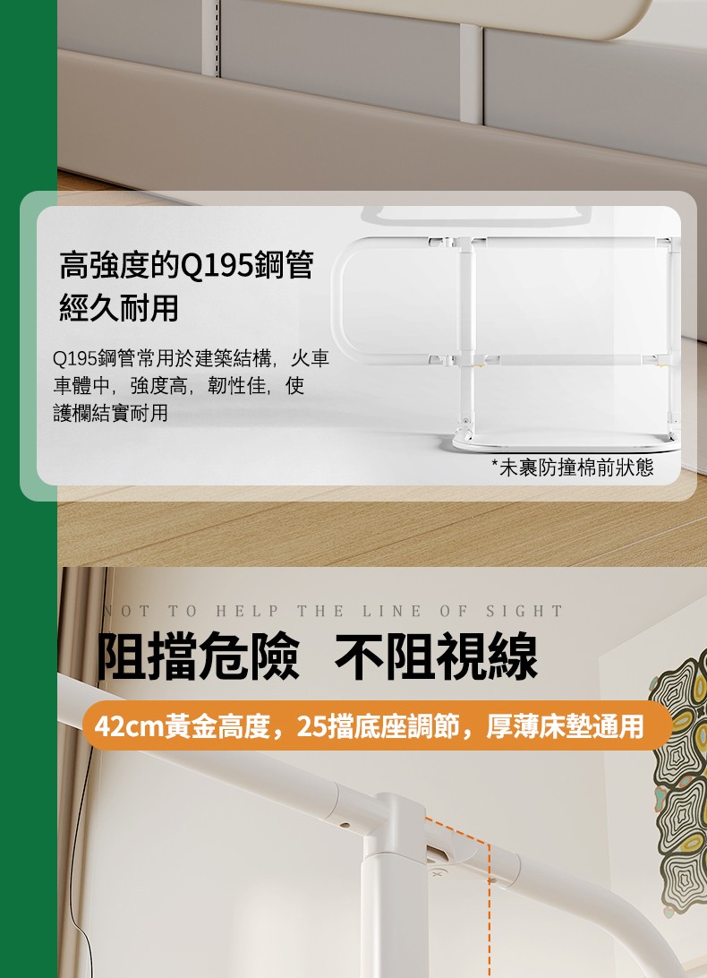 11分鐘前隨時隨地守護寶寶睡眠安全!【多貝嬰】可折疊防摔防護欄,免安裝,打開即用,旅行出遊方便攜帶 - 1.8米-免安裝折疊款