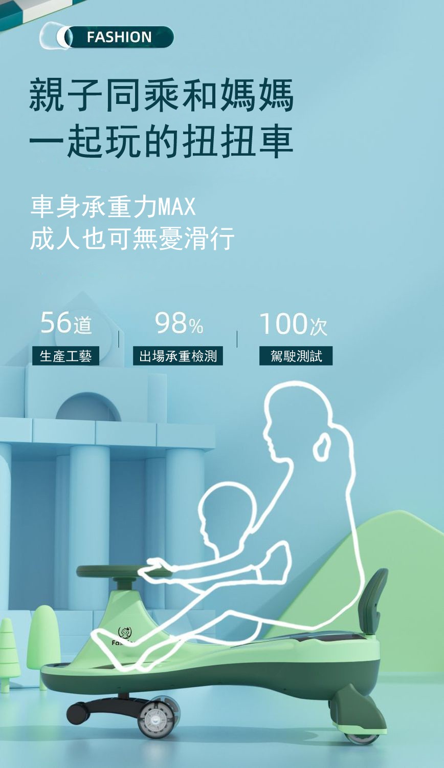 2分鐘前【日本東京熱銷】兒童扭扭車,寶寶大人都可坐 - 高配款 靜音閃光輪+音樂燈光 NT$1750