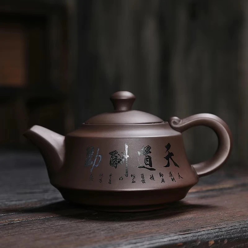 7分鐘前宜興紫砂壺原礦紫泥四方龍尊茶壺,尊貴與典雅的生活儀式,八方新氣藝術佳作 - 紫砂如意壺-天道酬勤(240ML)--贈兩杯