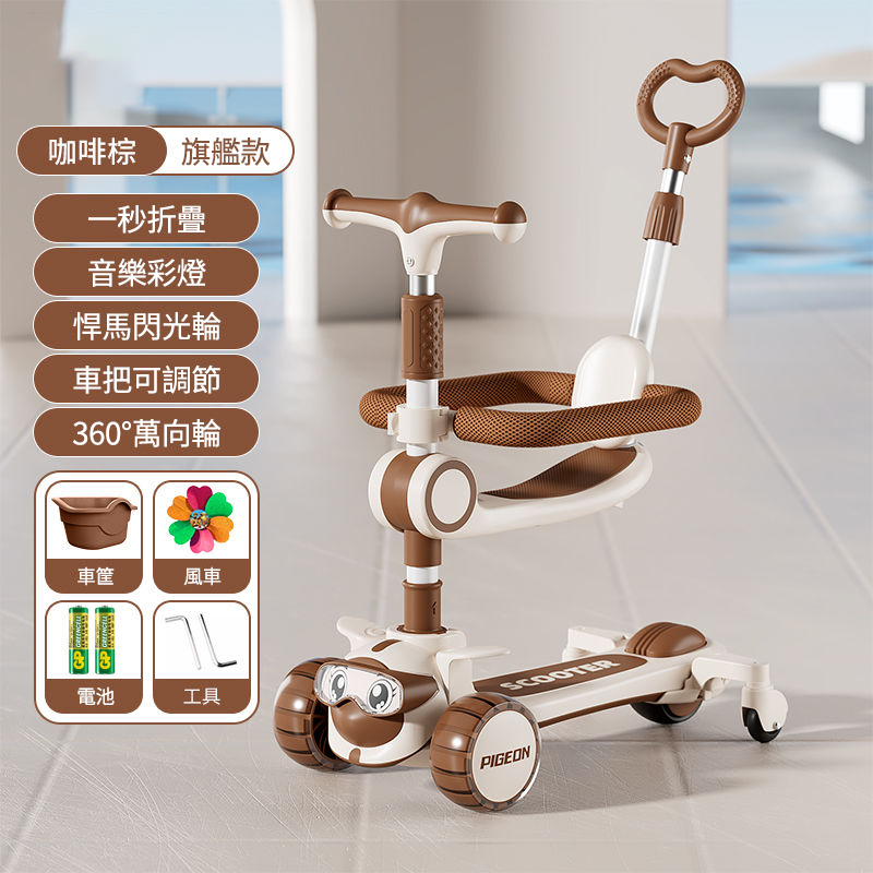 4分鐘前【降價熱賣】新款兒童多功能滑板車,1到14歲都能玩!!陪伴寶寶成長 快樂整個童年! - 咖啡棕【送車筐+風車】