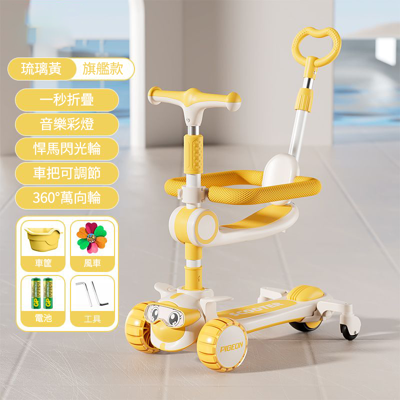 4分鐘前【降價熱賣】新款兒童多功能滑板車,1到14歲都能玩!!陪伴寶寶成長 快樂整個童年! - 琉璃黃【送車筐+風車】
