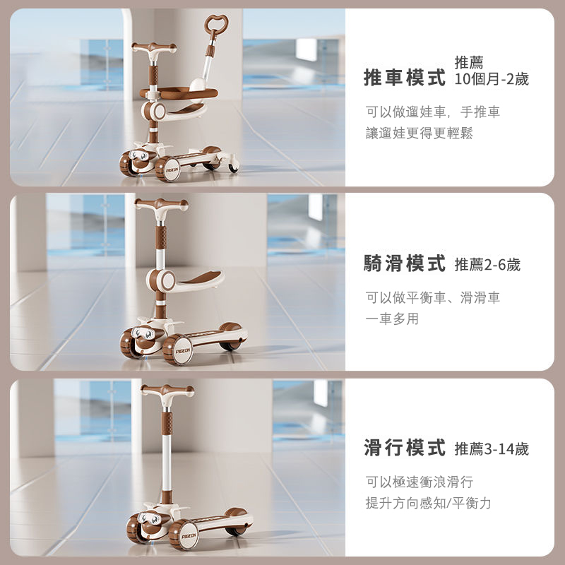 2分鐘前【降價熱賣】新款兒童多功能滑板車,1到14歲都能玩!!陪伴寶寶成長 快樂整個童年! - 咖啡棕【送車筐+風車】