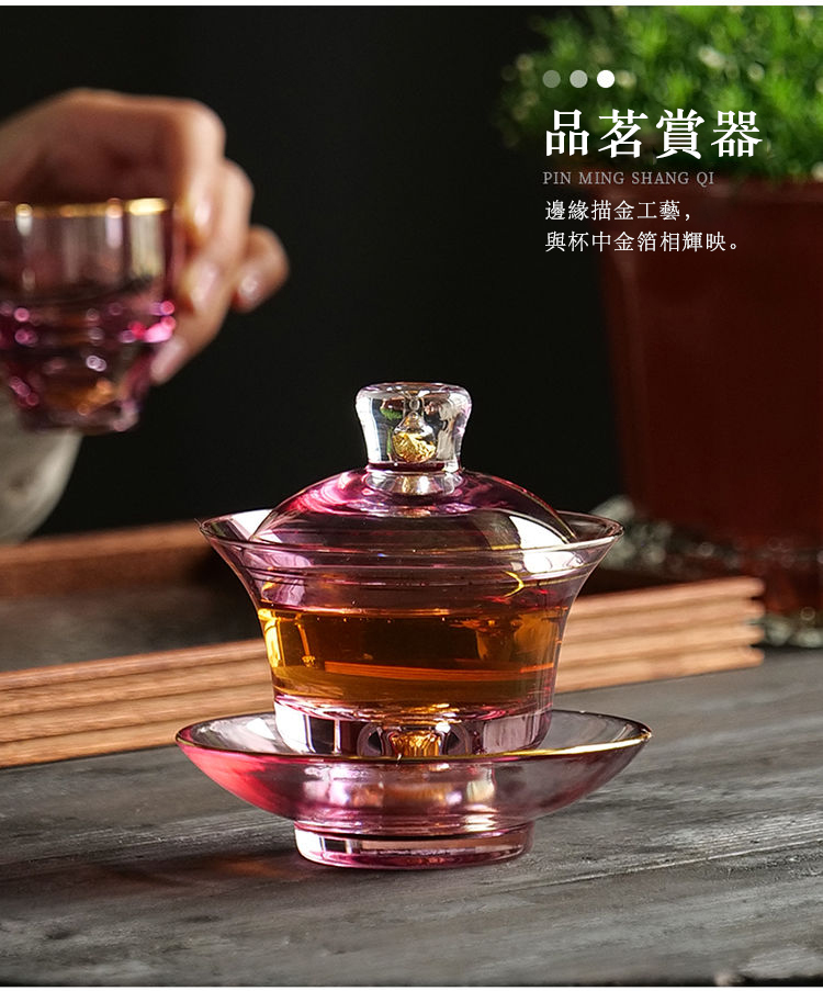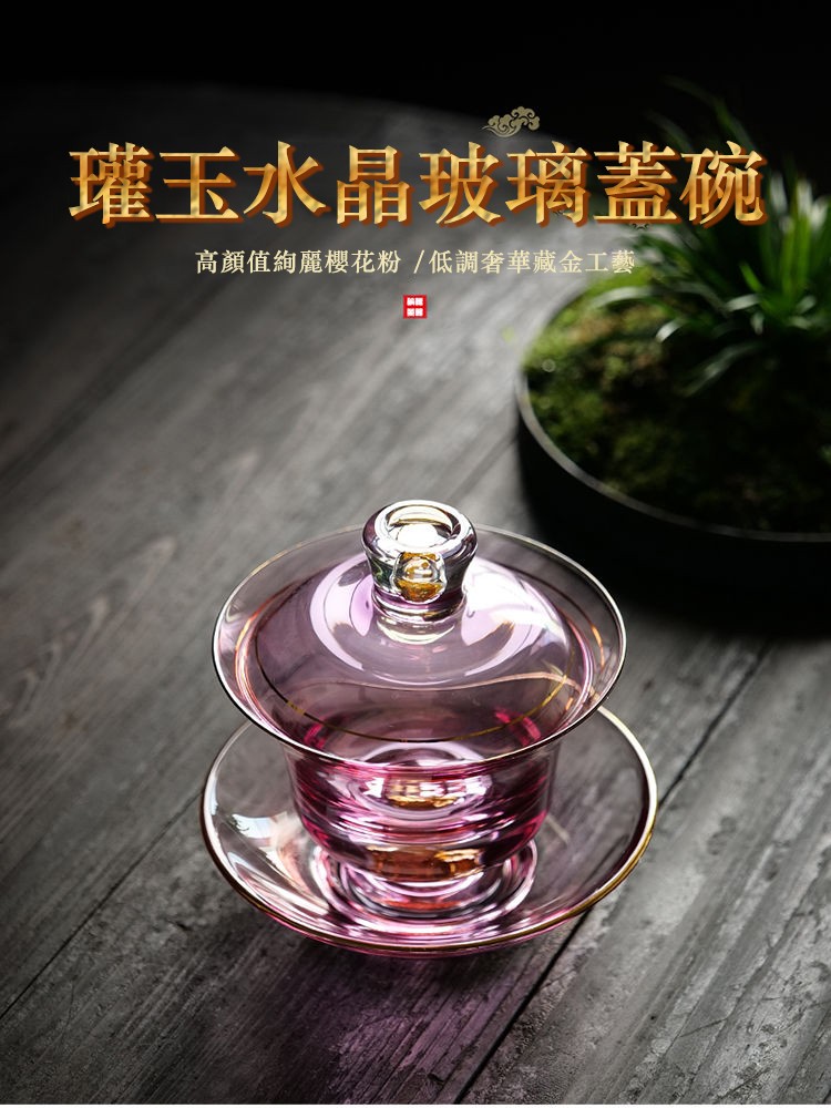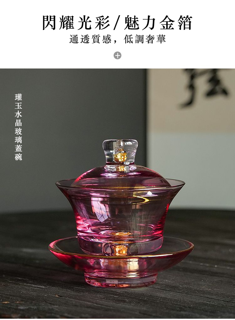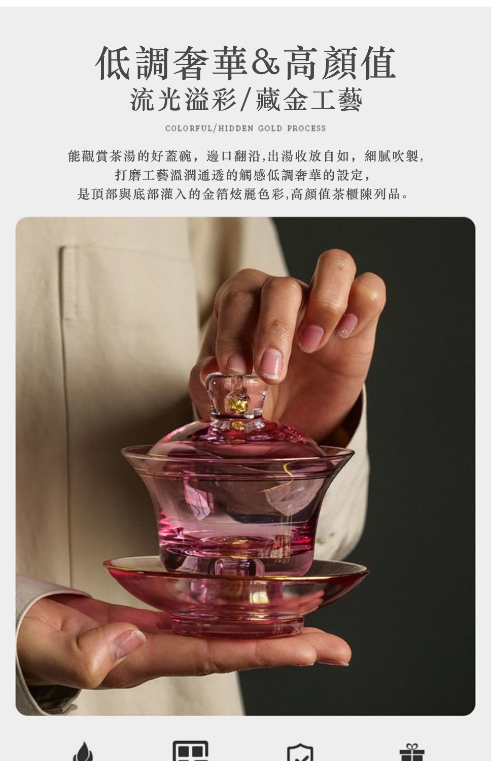 2分鐘前【汀和大福】瓘玉金箔高檔玻璃三才蓋碗 - 櫻花粉