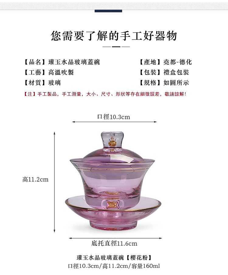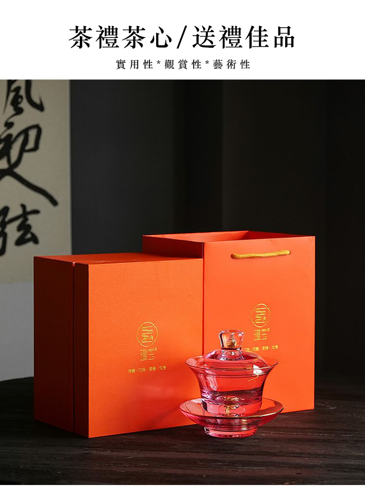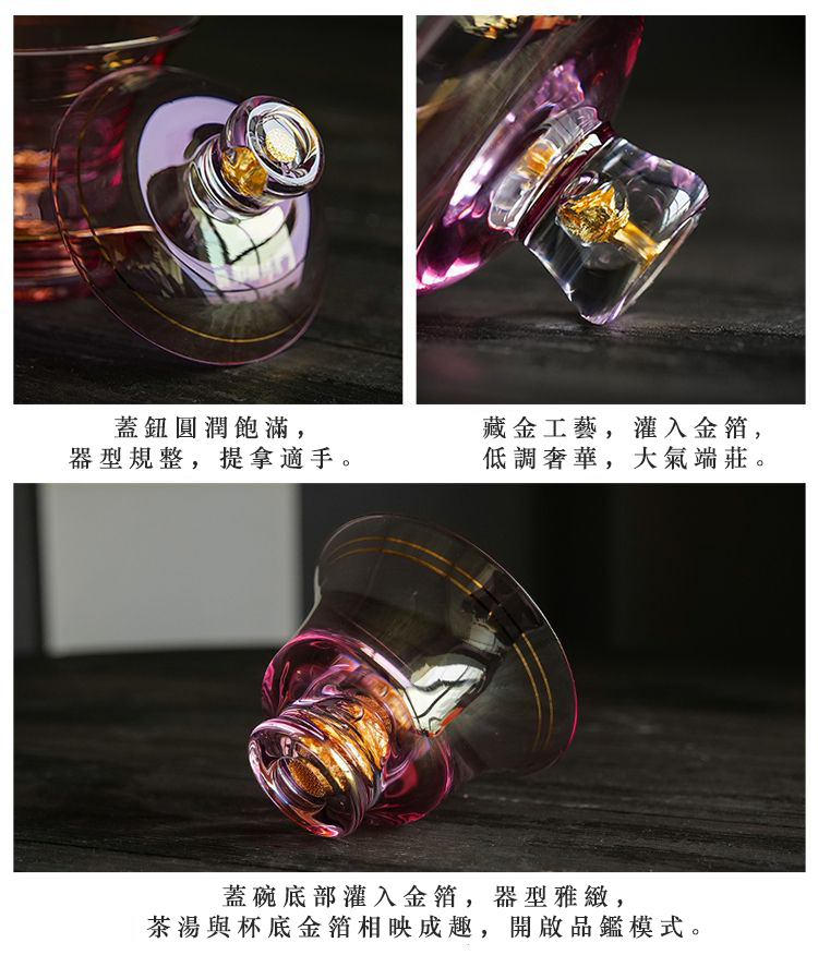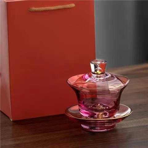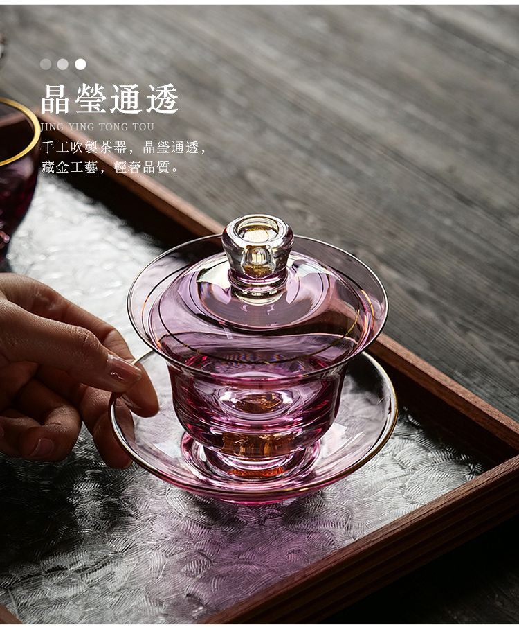 2分鐘前【汀和大福】瓘玉金箔高檔玻璃三才蓋碗 - 櫻花粉