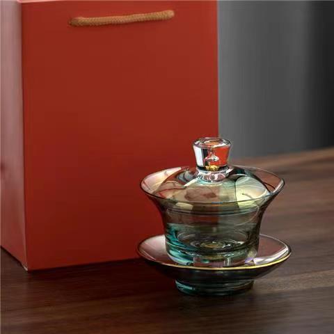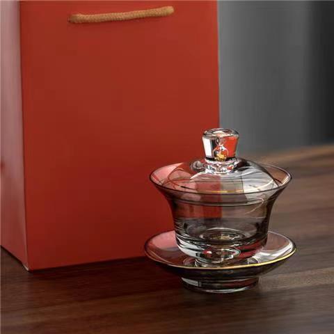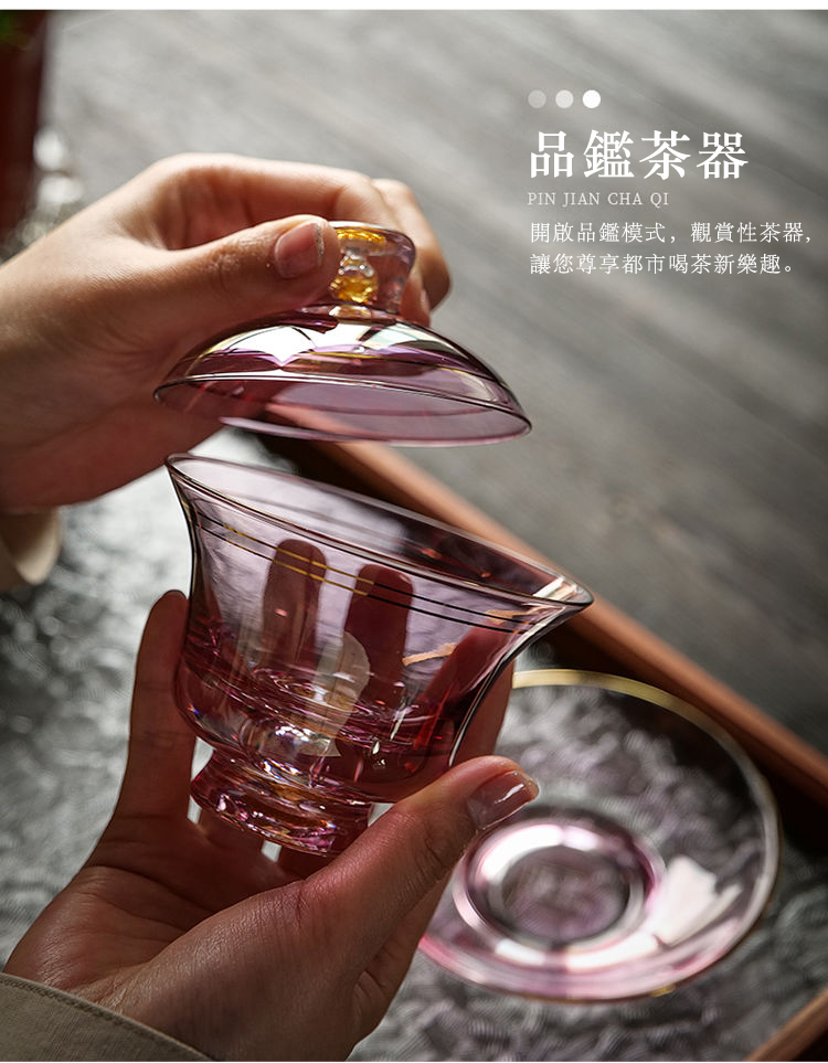 4分鐘前【汀和大福】瓘玉金箔高檔玻璃三才蓋碗 - 煙灰色