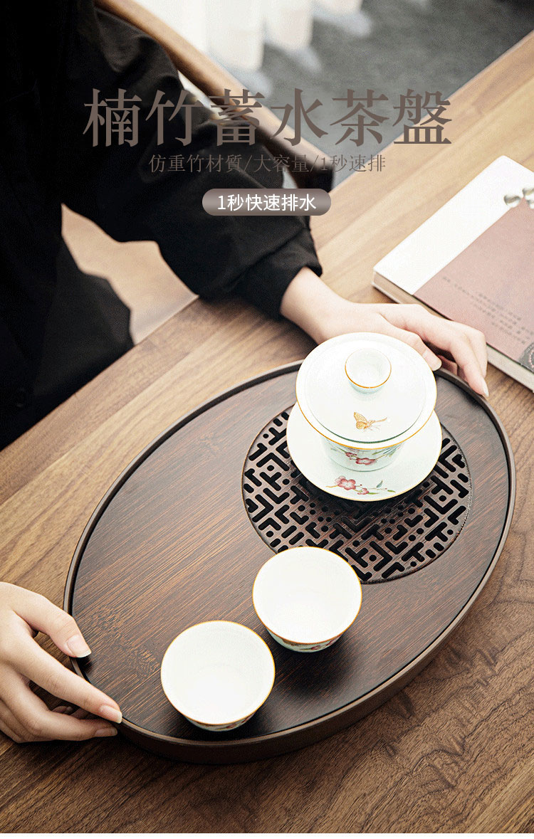 15分鐘前【汀和大福】楠竹蓄水茶盤,1秒快速排水,多尺寸多場景適用! - 中號(33.5X22X5CM)