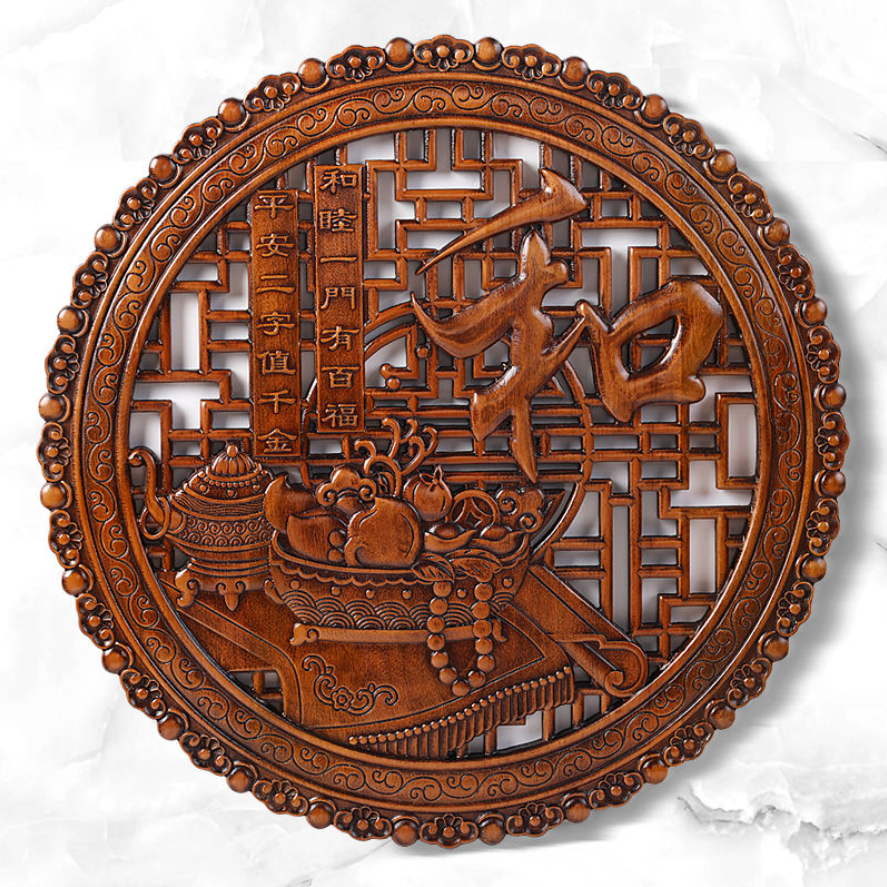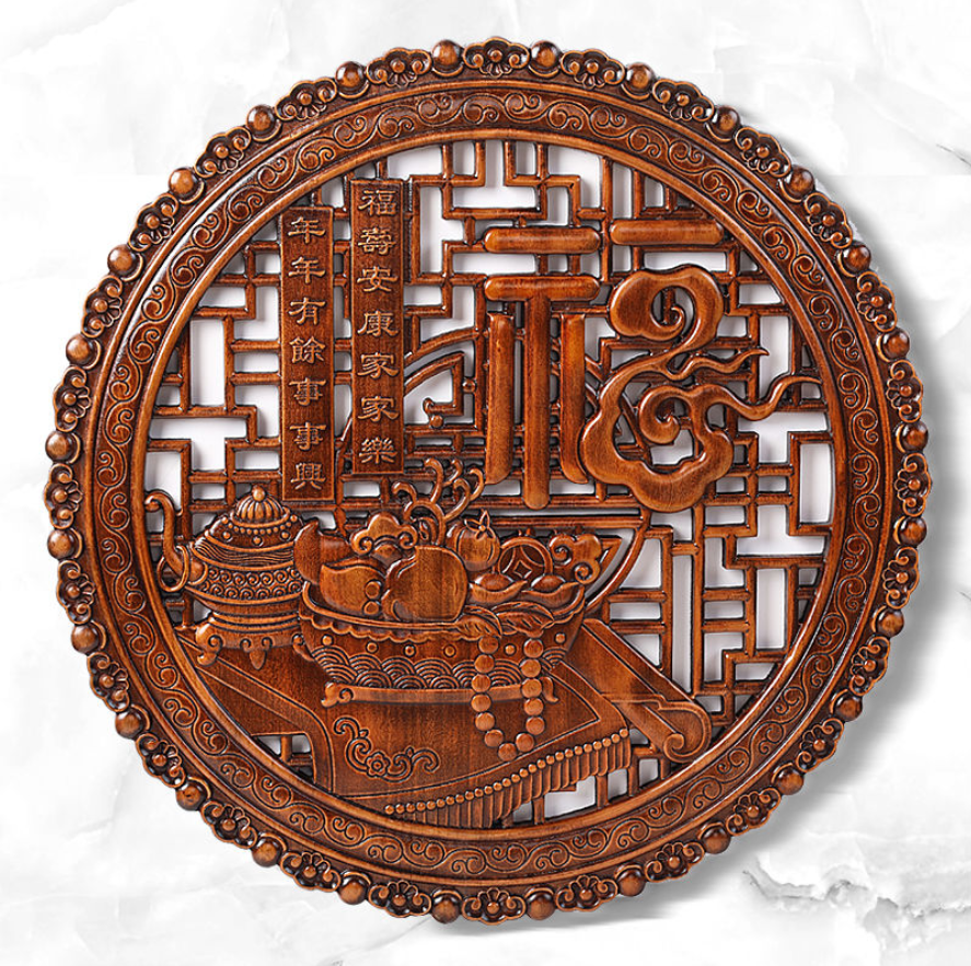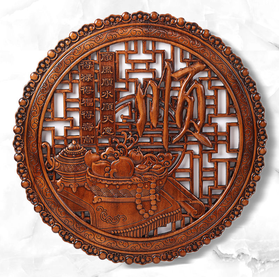 20分鐘前 [東陽木雕] 傳承千年木上巧思——天然香樟木雕刻掛件 久放升值 家中旺!年年順! - 經典款-圓形28cm---NT$1480