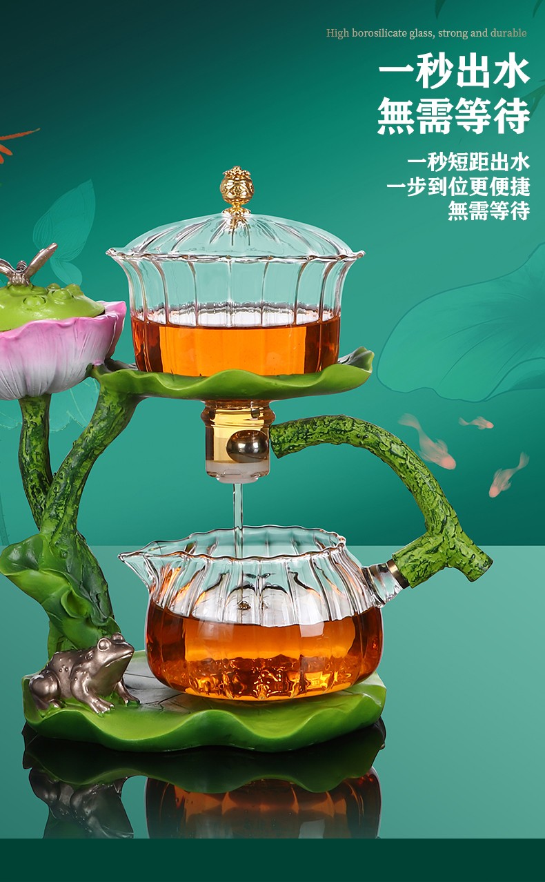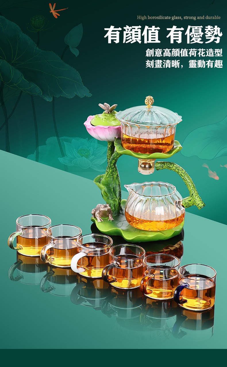 25分鐘前【汀和大福】荷荷美美2023新款自動茶具! - 荷塘月色-玻璃泡茶器+6茶杯