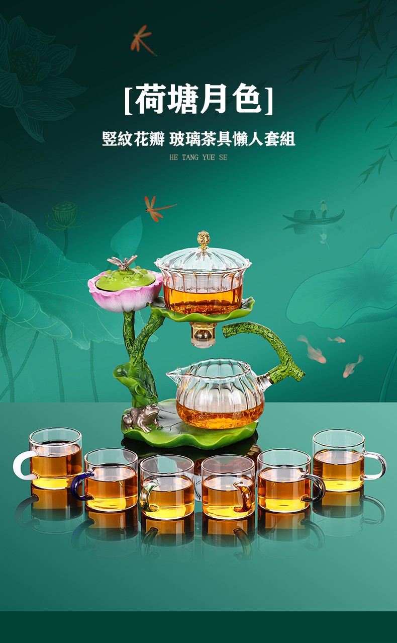 7分鐘前【汀和大福】荷荷美美2023新款自動茶具! - 荷塘月色-玻璃泡茶器+6茶杯