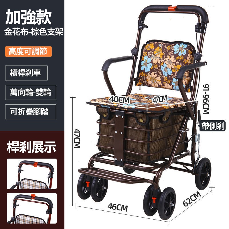 5分鐘前可折疊多功能老人代步購物車 超強承重 大容量收納 各種場景都適用,長輩們購物、散步更輕鬆! - 【影片同款】老人代步購物車+帶踏板 NT$3350