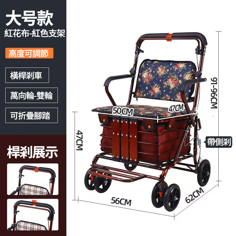 12分鐘前可折疊多功能老人代步購物車 超強承重 大容量收納 各種場景都適用,長輩們購物、散步更輕鬆! - 【大號款】老人代步購物車+帶踏板 NT$4050