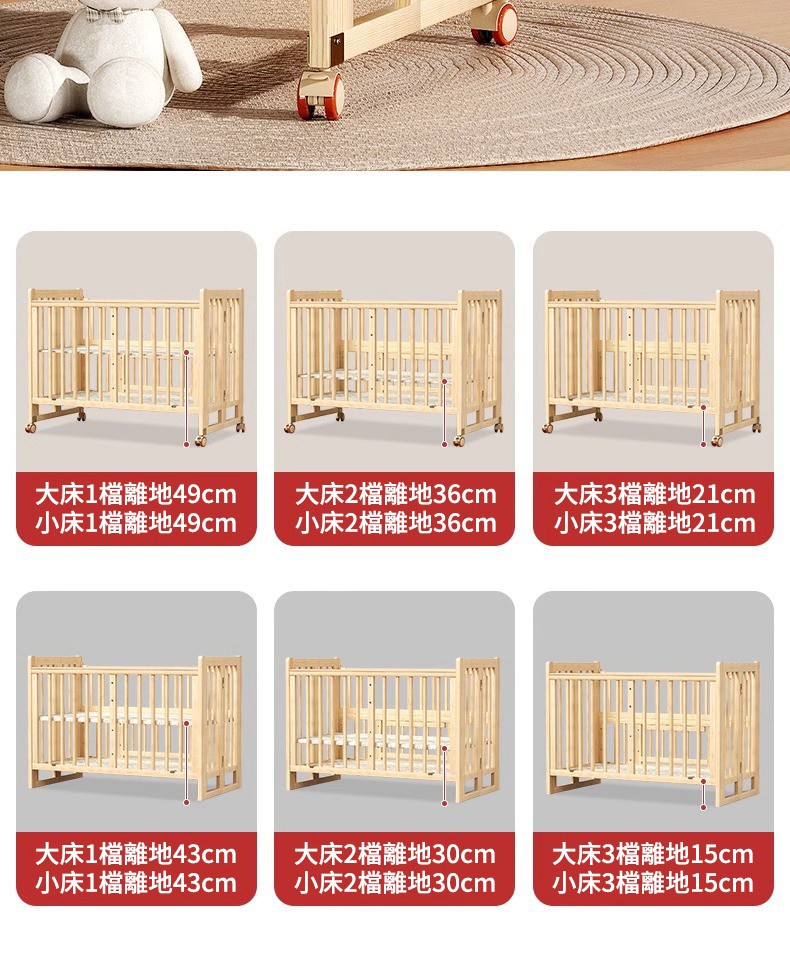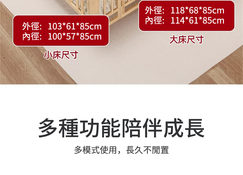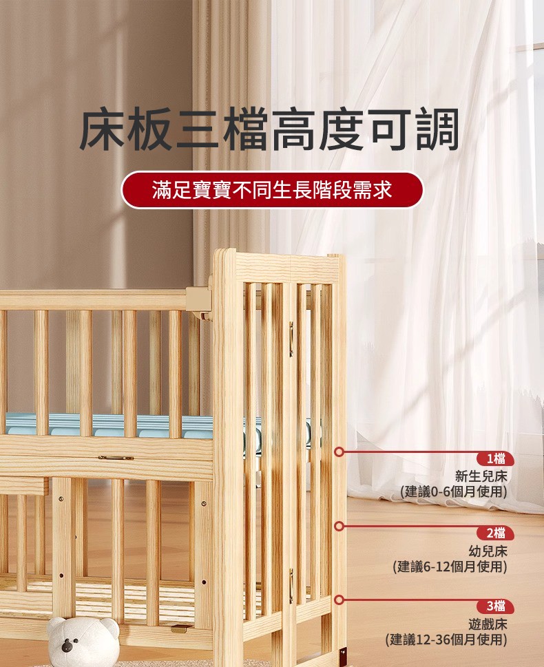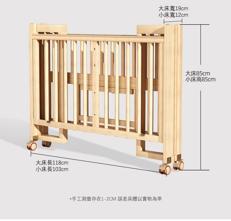 7分鐘前陪伴寶寶成長,永不閒置【嬰兒床-->遊戲床-->書桌】日本超火の可折疊嬰兒床,實木無漆更安心,可拼接大床+滑輪移動,多功能設計陪寶寶成長! - 【118*68*85cm】折疊大床+五件套+棕墊+蚊帳