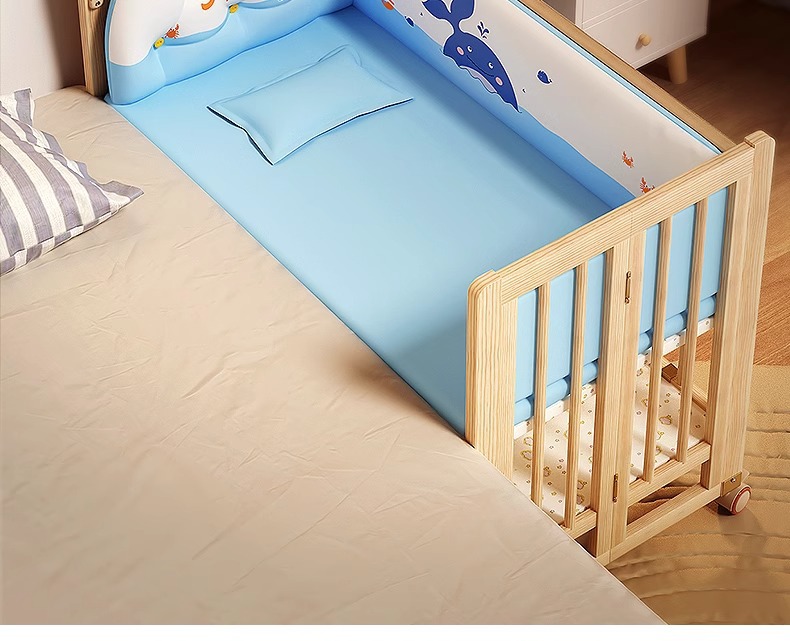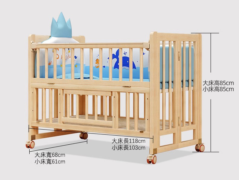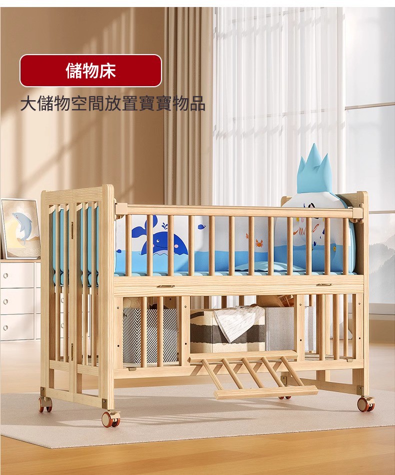 7分鐘前陪伴寶寶成長,永不閒置【嬰兒床-->遊戲床-->書桌】日本超火の可折疊嬰兒床,實木無漆更安心,可拼接大床+滑輪移動,多功能設計陪寶寶成長! - 【118*68*85cm】折疊大床+五件套+蚊帳