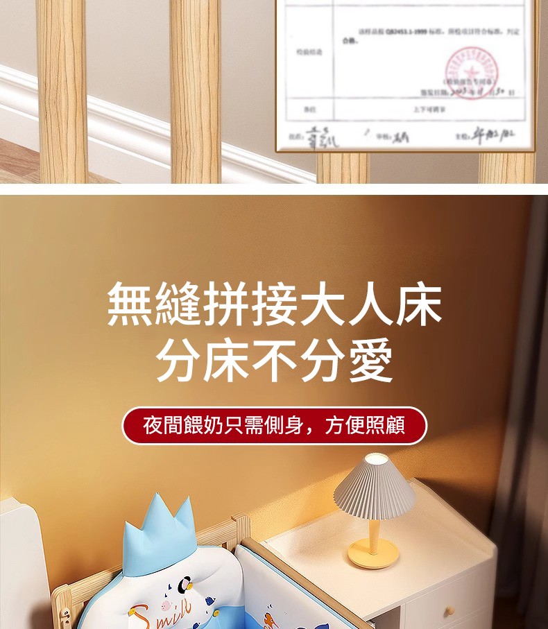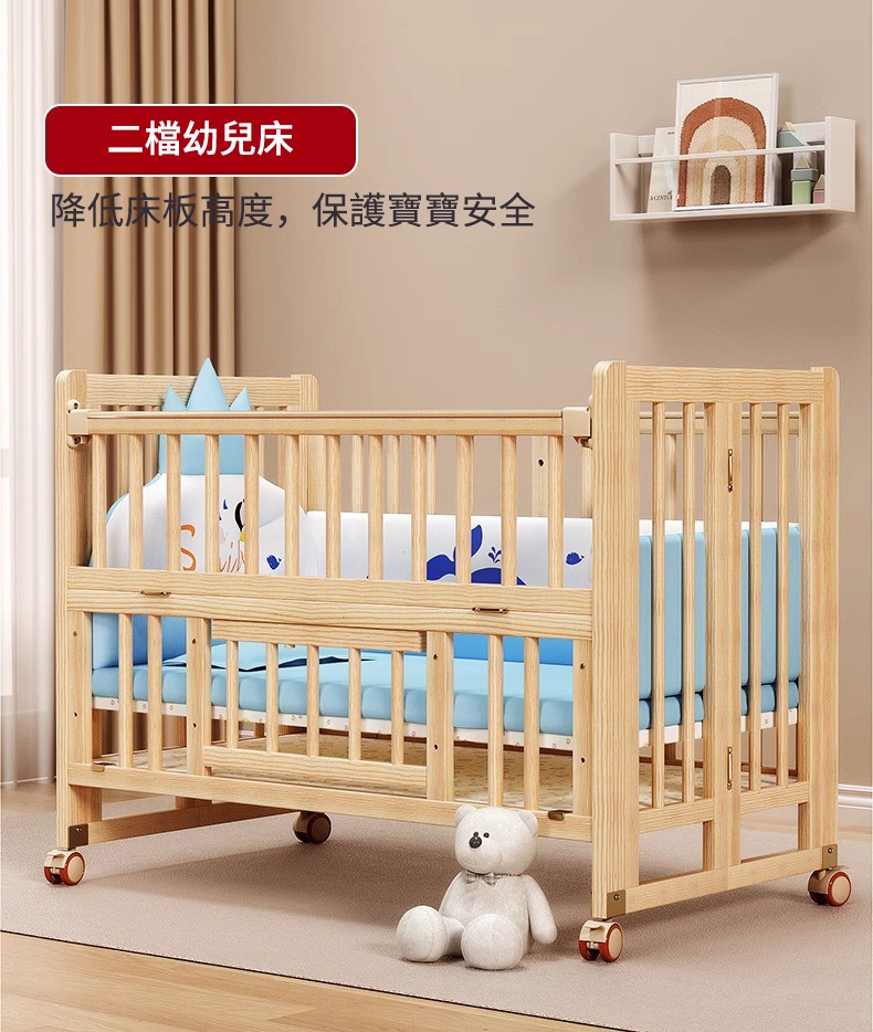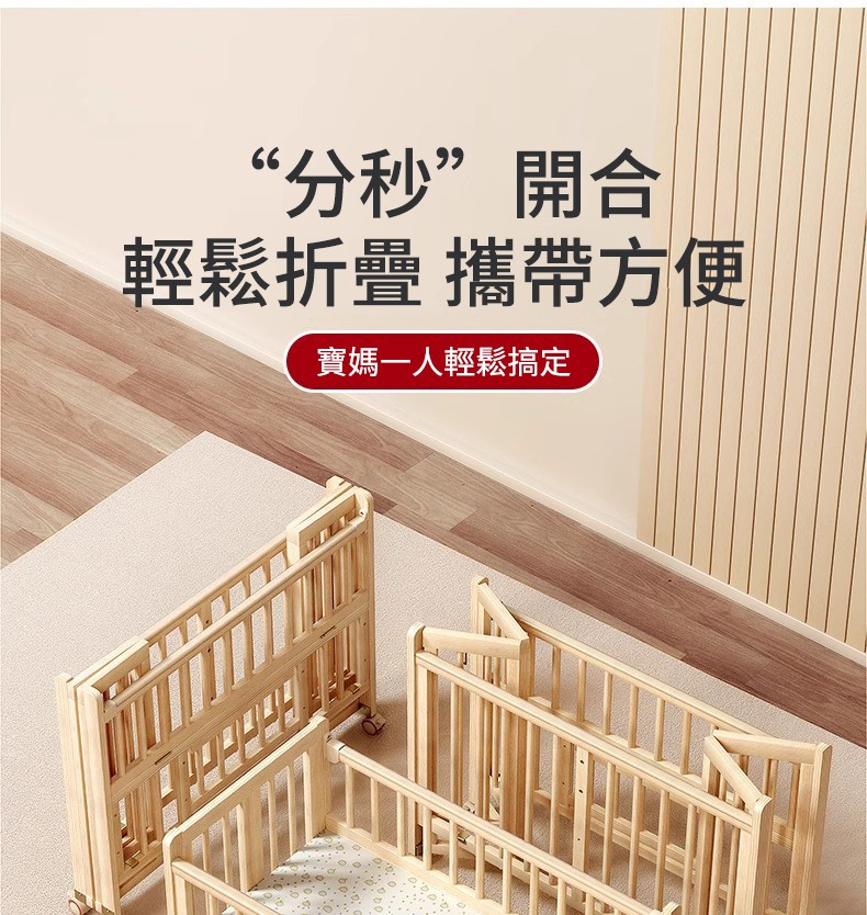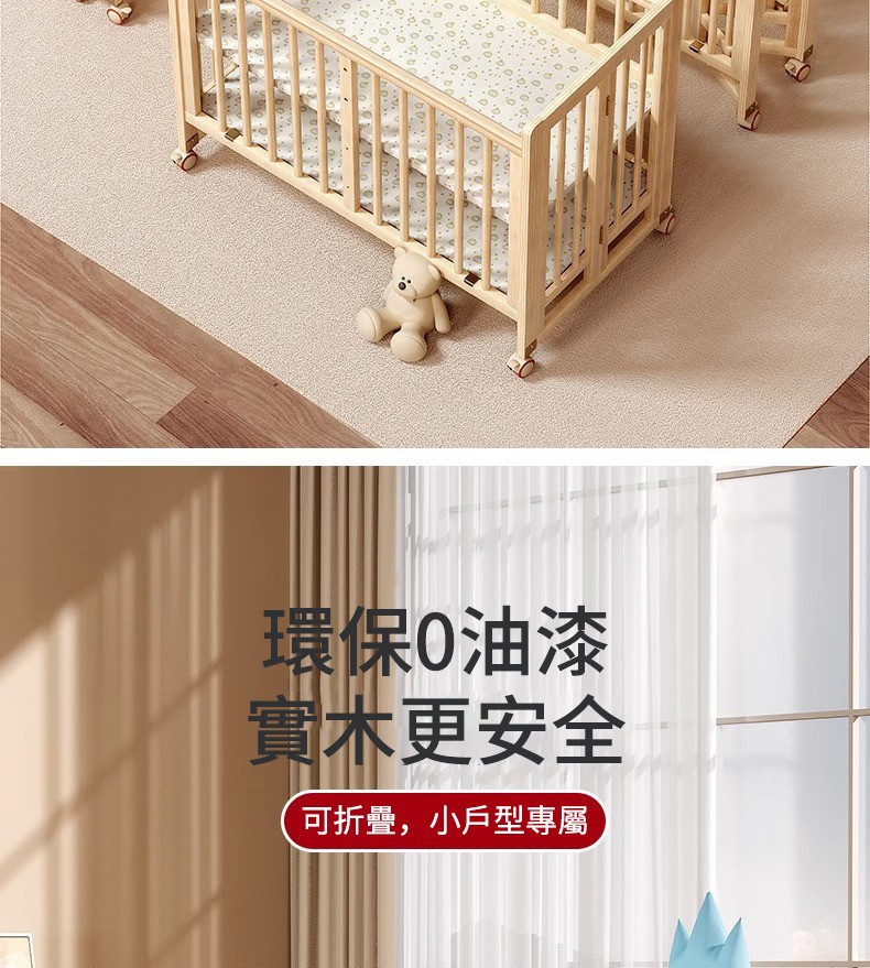 11分鐘前陪伴寶寶成長,永不閒置【嬰兒床-->遊戲床-->書桌】日本超火の可折疊嬰兒床,實木無漆更安心,可拼接大床+滑輪移動,多功能設計陪寶寶成長! - 【118*68*85cm】折疊大床+五件套+蚊帳