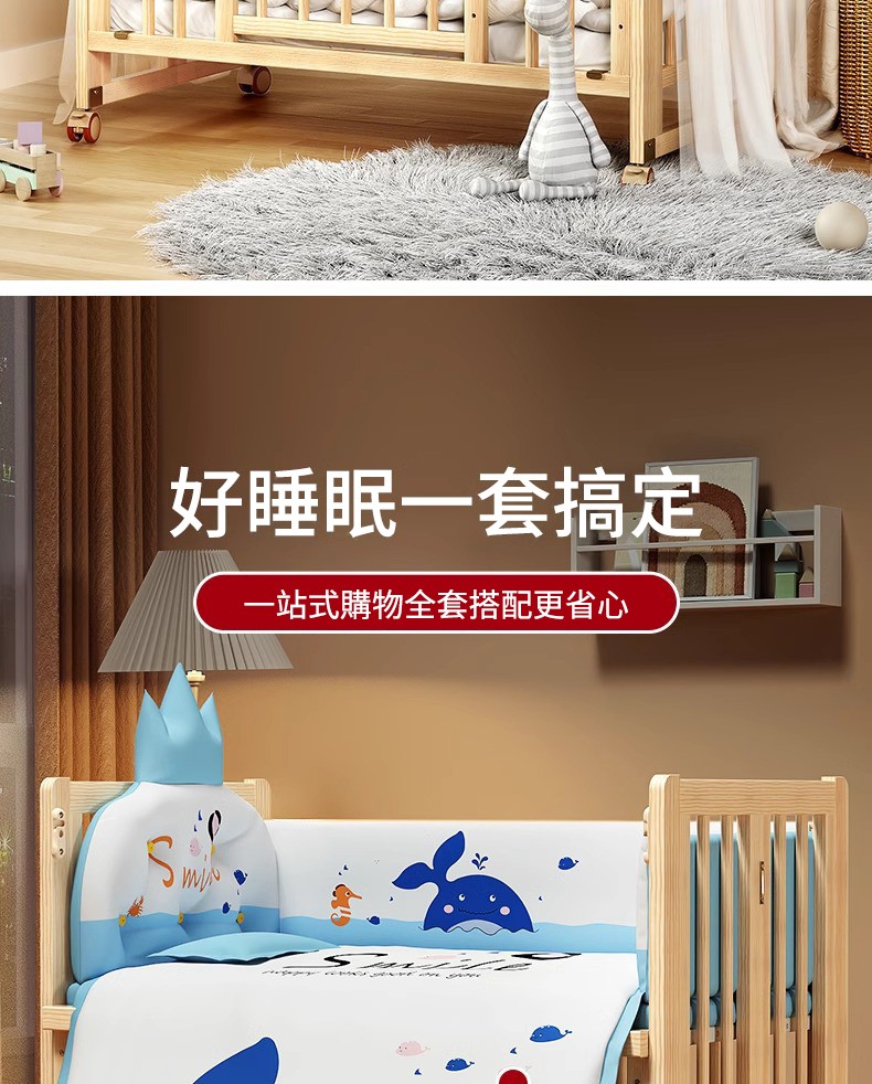 4分鐘前陪伴寶寶成長,永不閒置【嬰兒床-->遊戲床-->書桌】日本超火の可折疊嬰兒床,實木無漆更安心,可拼接大床+滑輪移動,多功能設計陪寶寶成長! - 【118*68*85cm】折疊大床+五件套+蚊帳