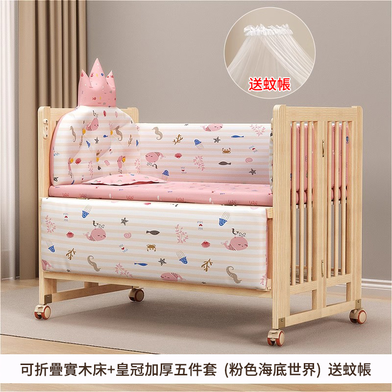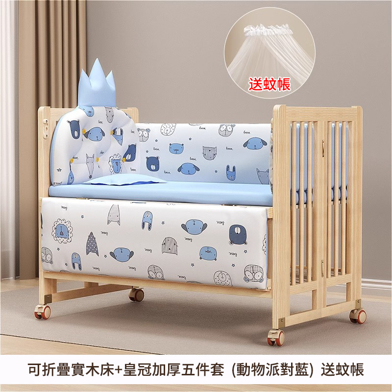 4分鐘前陪伴寶寶成長,永不閒置【嬰兒床-->遊戲床-->書桌】日本超火の可折疊嬰兒床,實木無漆更安心,可拼接大床+滑輪移動,多功能設計陪寶寶成長! - 【103*61*85cm】折疊小床+五件套+棕墊+蚊帳