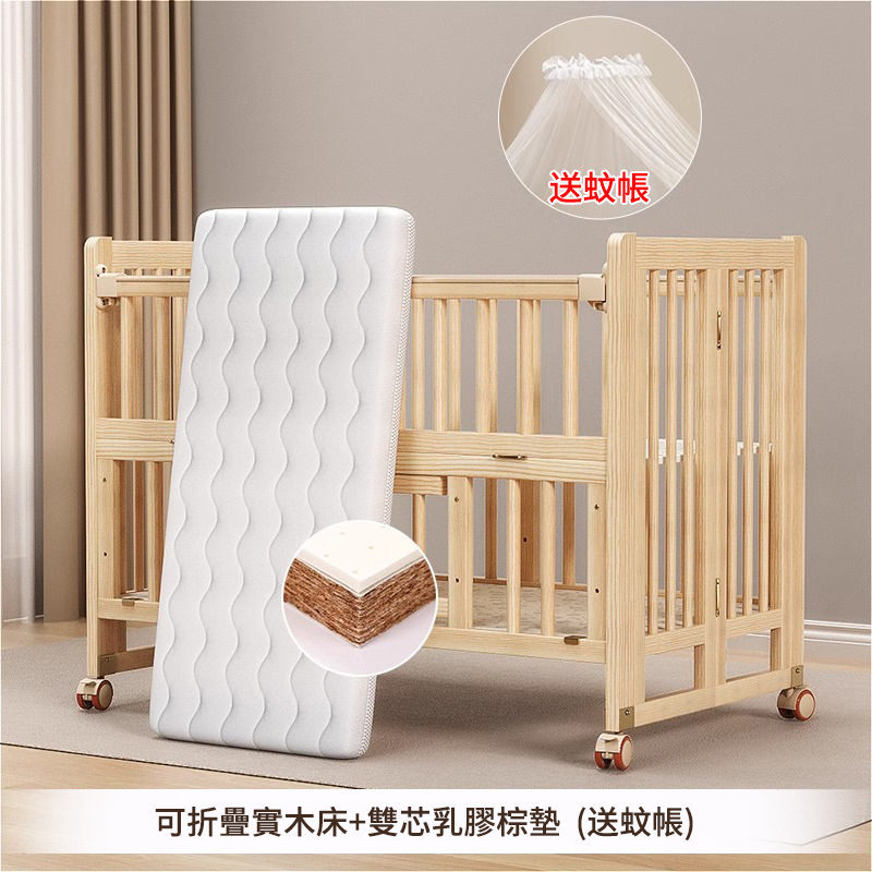 12分鐘前陪伴寶寶成長,永不閒置【嬰兒床-->遊戲床-->書桌】日本超火の可折疊嬰兒床,實木無漆更安心,可拼接大床+滑輪移動,多功能設計陪寶寶成長! - 【103*61*85cm】折疊小床+五件套+棕墊+蚊帳