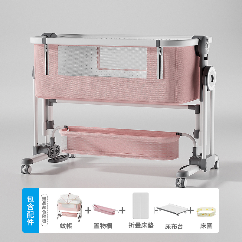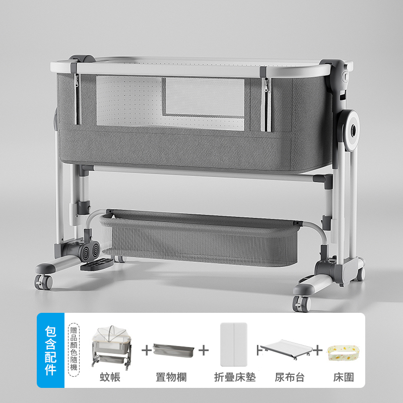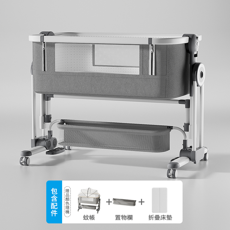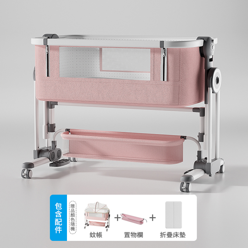 半小時前熱銷萬台!【寶寶的專屬空間】免安裝可折疊多功能嬰兒床,一床多用可移動、可搖擺,輕鬆拼接大床陪睡! - 【尊享款】床墊+置物籃+蚊帳+尿佈台+床圍