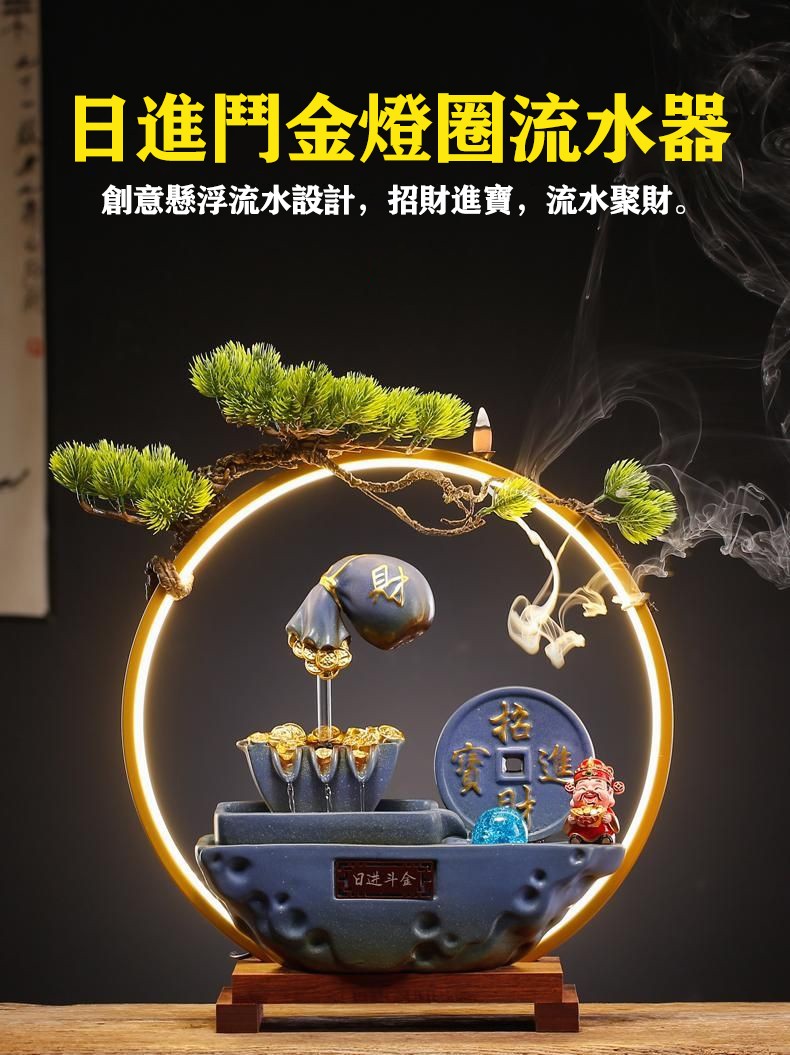 12分鐘前【汀和大福】流水生財,日進鬥金燈圈流水器擺件!千年窯火,傳承百年工藝! - 日進鬥金燈圈流水器擺件+燈圈(招財進寶)-財到款