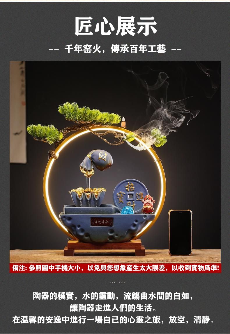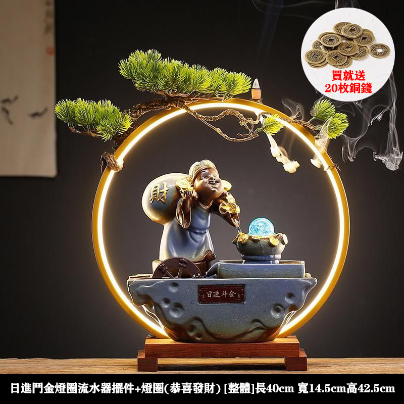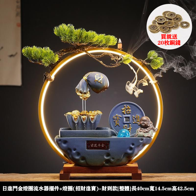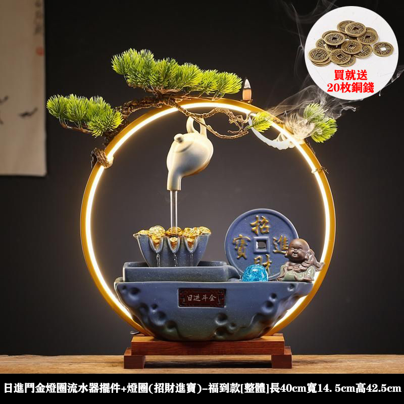 20分鐘前【汀和大福】流水生財,日進鬥金燈圈流水器擺件!千年窯火,傳承百年工藝! - 日進鬥金燈圈流水器擺件+燈圈(招財進寶)-福到款