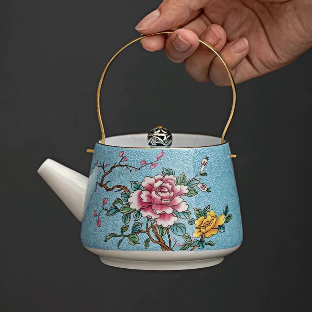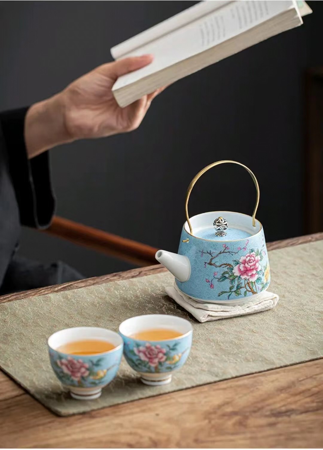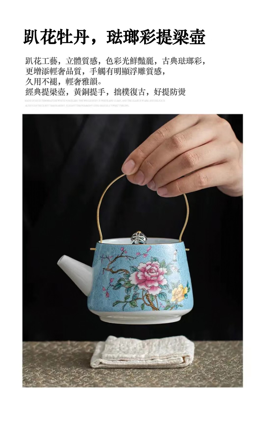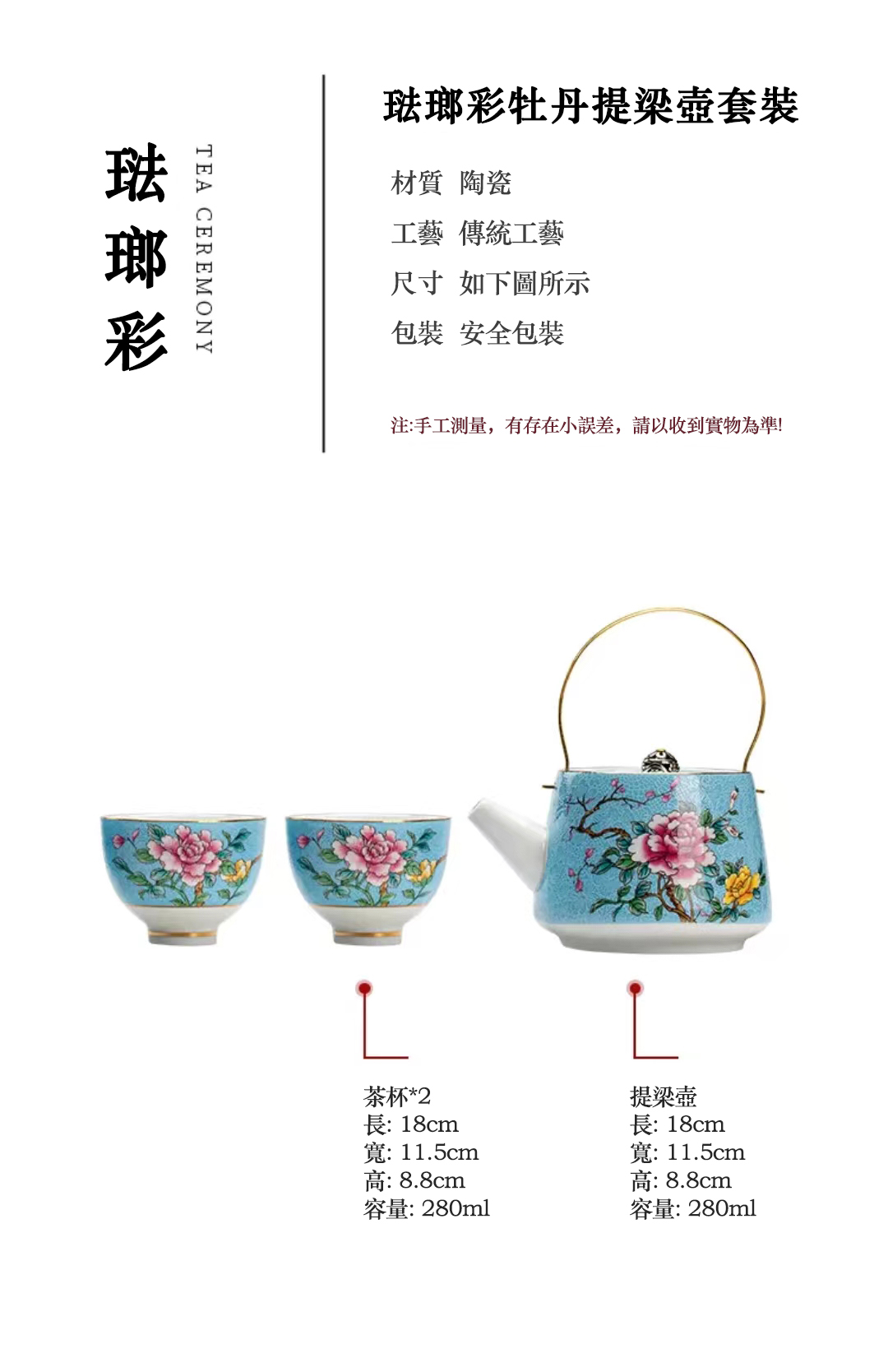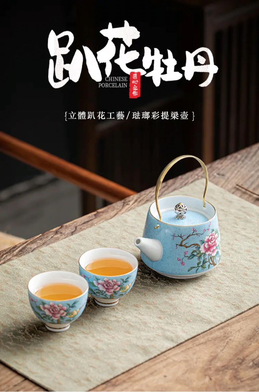 2分鐘前【汀和大福】藍色牡丹花茶壺茶具套裝提梁壺主人杯 - 藍色牡丹花茶壺套裝