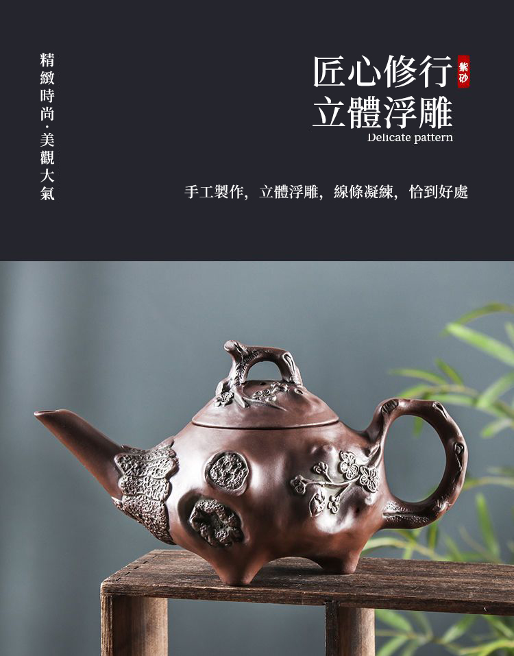 15分鐘前✩ 絕版收藏!正宗宜興紫砂朱泥長嘴供春壺 ❘ 黃金大容量500cc ❘ 純手工浮雕匠製,泡茶更香 - 紫砂朱泥長嘴供春壺500cc