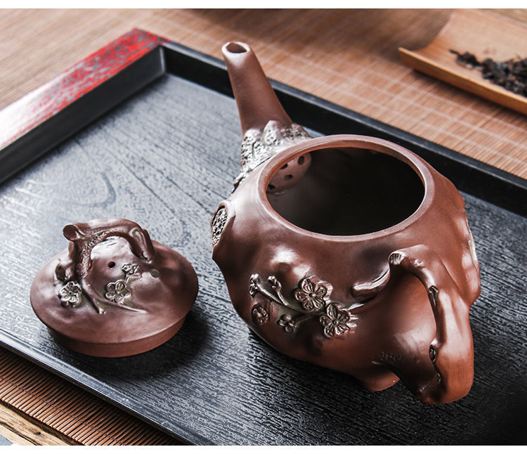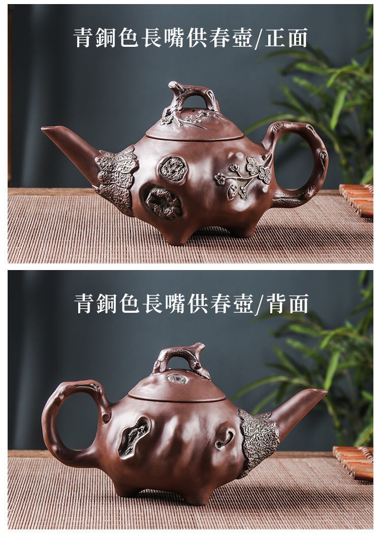 4分鐘前✩ 絕版收藏!正宗宜興紫砂朱泥長嘴供春壺 ❘ 黃金大容量500cc ❘ 純手工浮雕匠製,泡茶更香 - 紫砂朱泥長嘴供春壺500cc