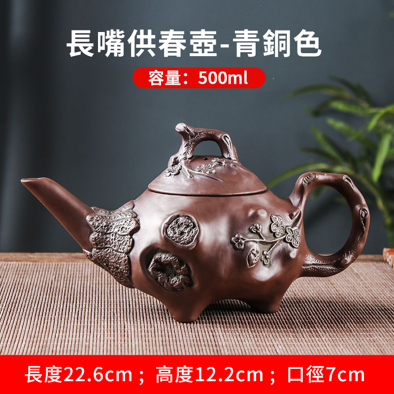 20分鐘前✩ 絕版收藏!正宗宜興紫砂朱泥長嘴供春壺 ❘ 黃金大容量500cc ❘ 純手工浮雕匠製,泡茶更香 - 紫砂朱泥長嘴供春壺500cc