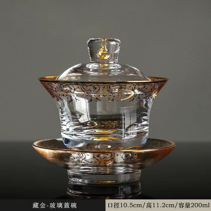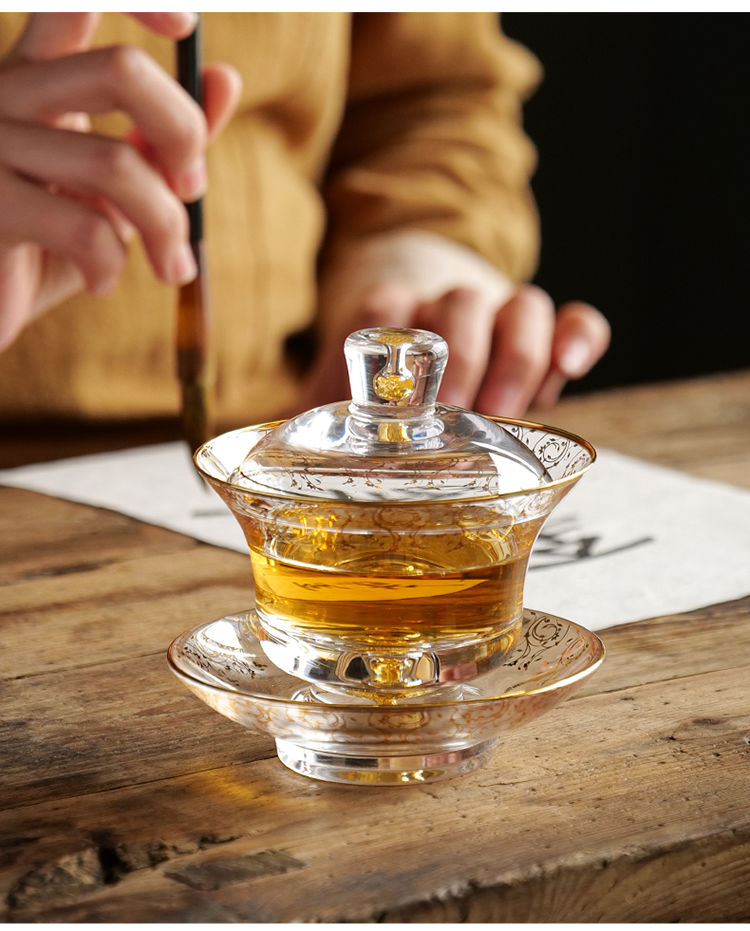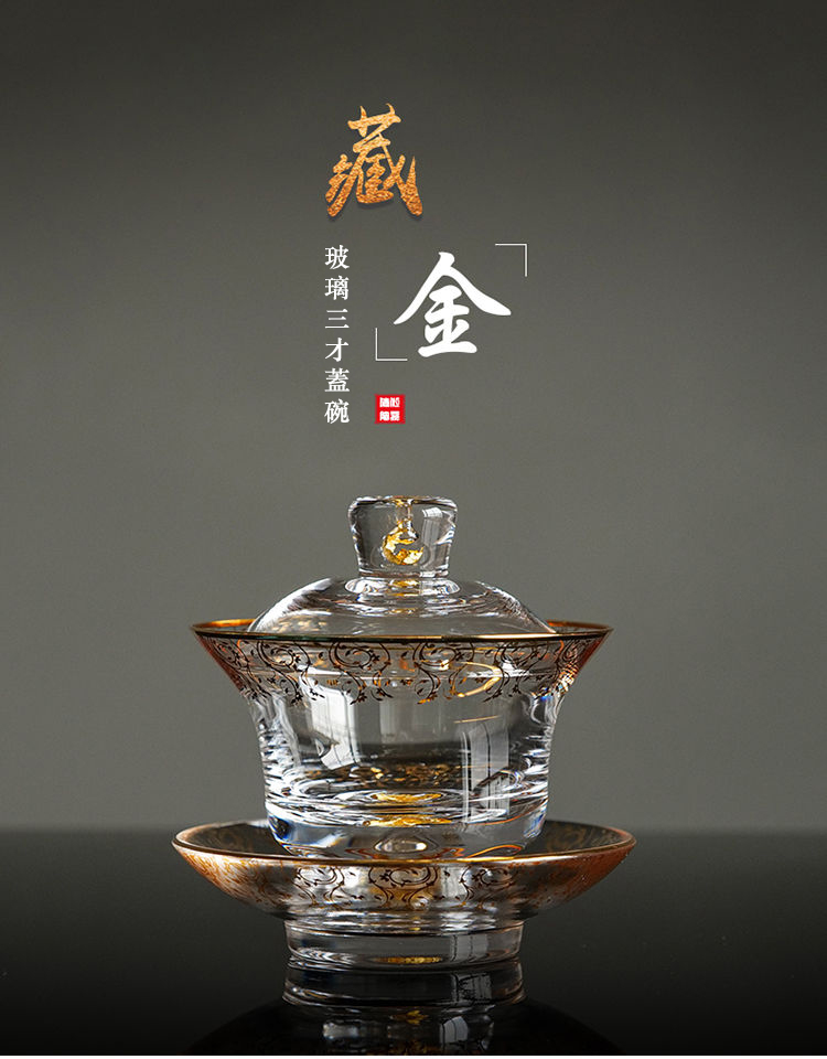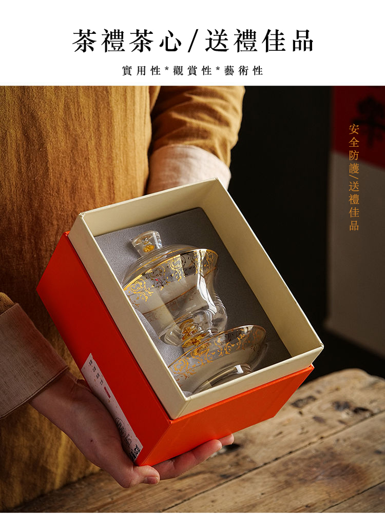 15分鐘前【汀和大福】藏金水晶玻璃三才蓋碗 - 藏金水晶三才蓋碗禮盒裝
