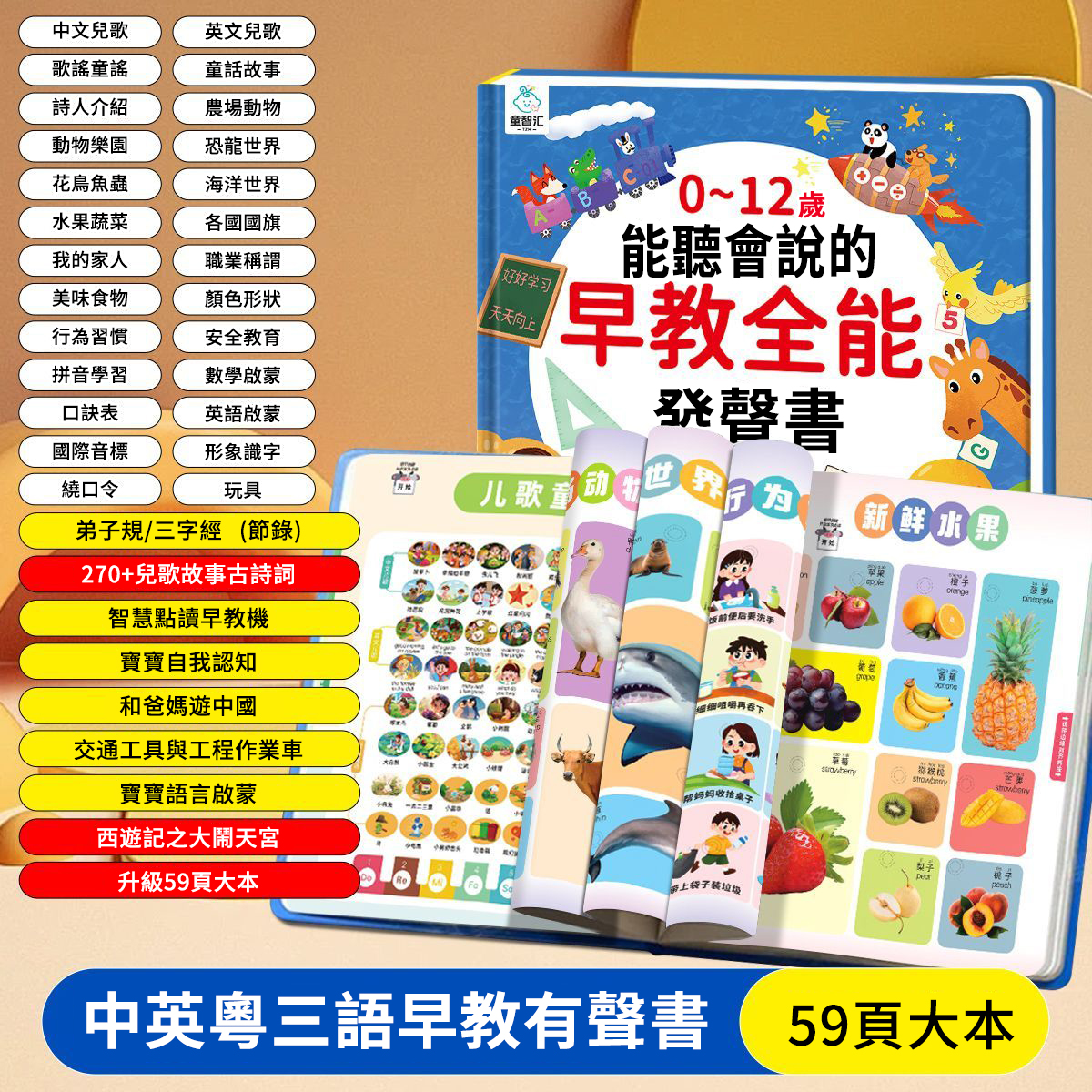 4分鐘前【二年質保 I 防水耐斯】會說話的早期教育有聲書0-12歲中英粵三語兒童早期教育啟蒙學習手指點讀書(送充電線) - 常規款【啟蒙早教】15主題800內容